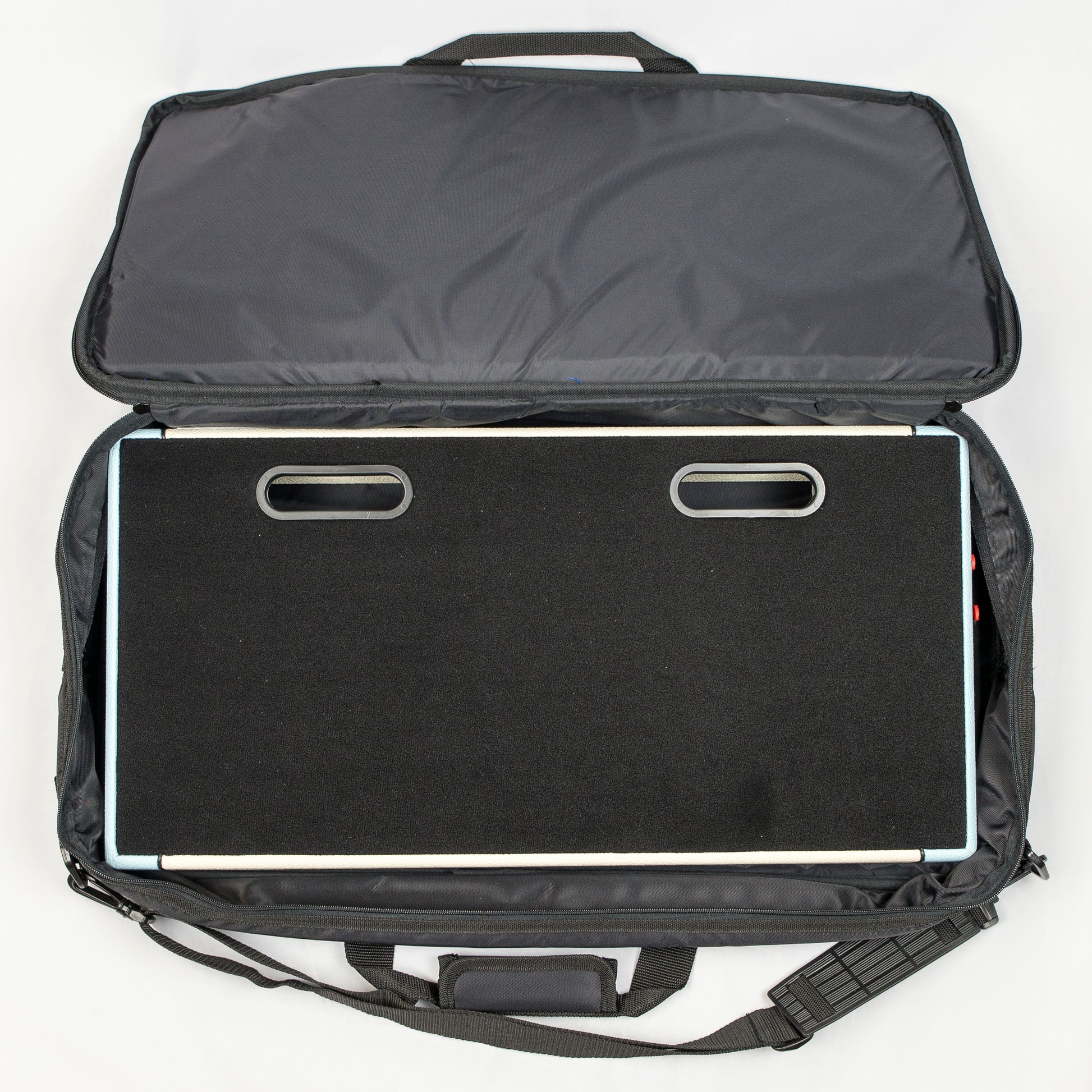 The 1224 gig bag is the best solution for musicians looking to travel light. It's unique live-in design allows you access to your side jacks and power so you can leave your pedalboard in the bag and play. It's fully padded interior means your pedalboard will arrive safely to any gig all while keeping your rig as light and portable as possible.