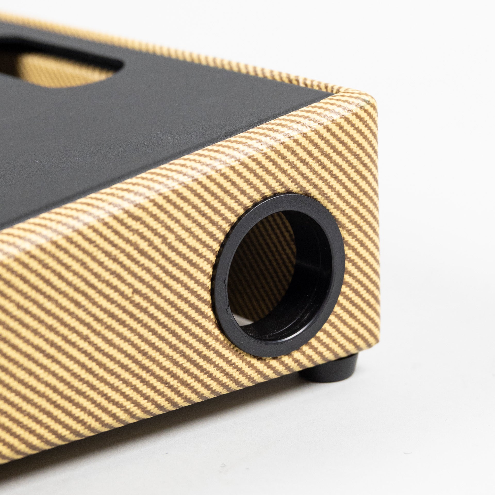 Designed for clean setups and easy access, the black aluminum top is built for 3M Dual Lock™, giving your pedals a rock-solid hold. With an angled frame, there’s plenty of space underneath for a full-size power supply, while dual side openings let you route power effortlessly or install an optional power inlet for an even faster setup.