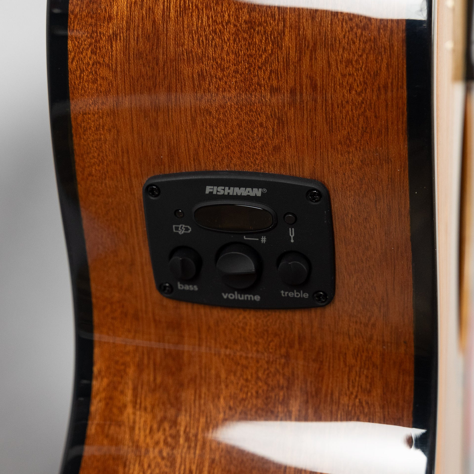 A Fishman Classic Design pickup/preamp system adds peerless amplified performance with a variety of onboard controls to your acoustic instrument without compromising its pure, rich and resonant tone. The built-in tuner is conveniently placed right where you can see it.