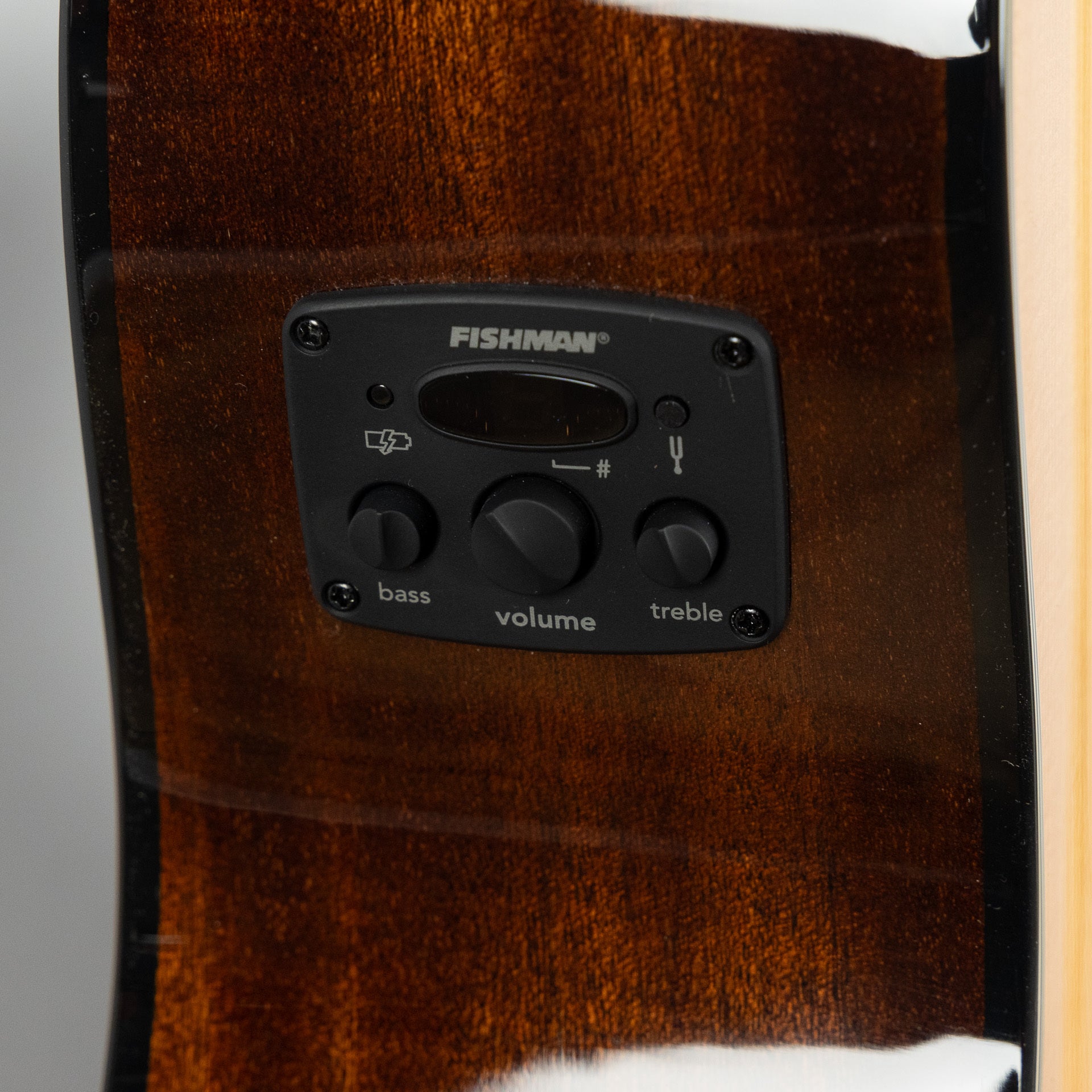 A Fishman pickup/preamp system adds peerless amplified performance with a variety of onboard controls to your acoustic instrument without compromising its pure, rich and resonant tone. The built-in tuner is conveniently placed right where you can see it, making it easy to keep your intonation right on the money.
