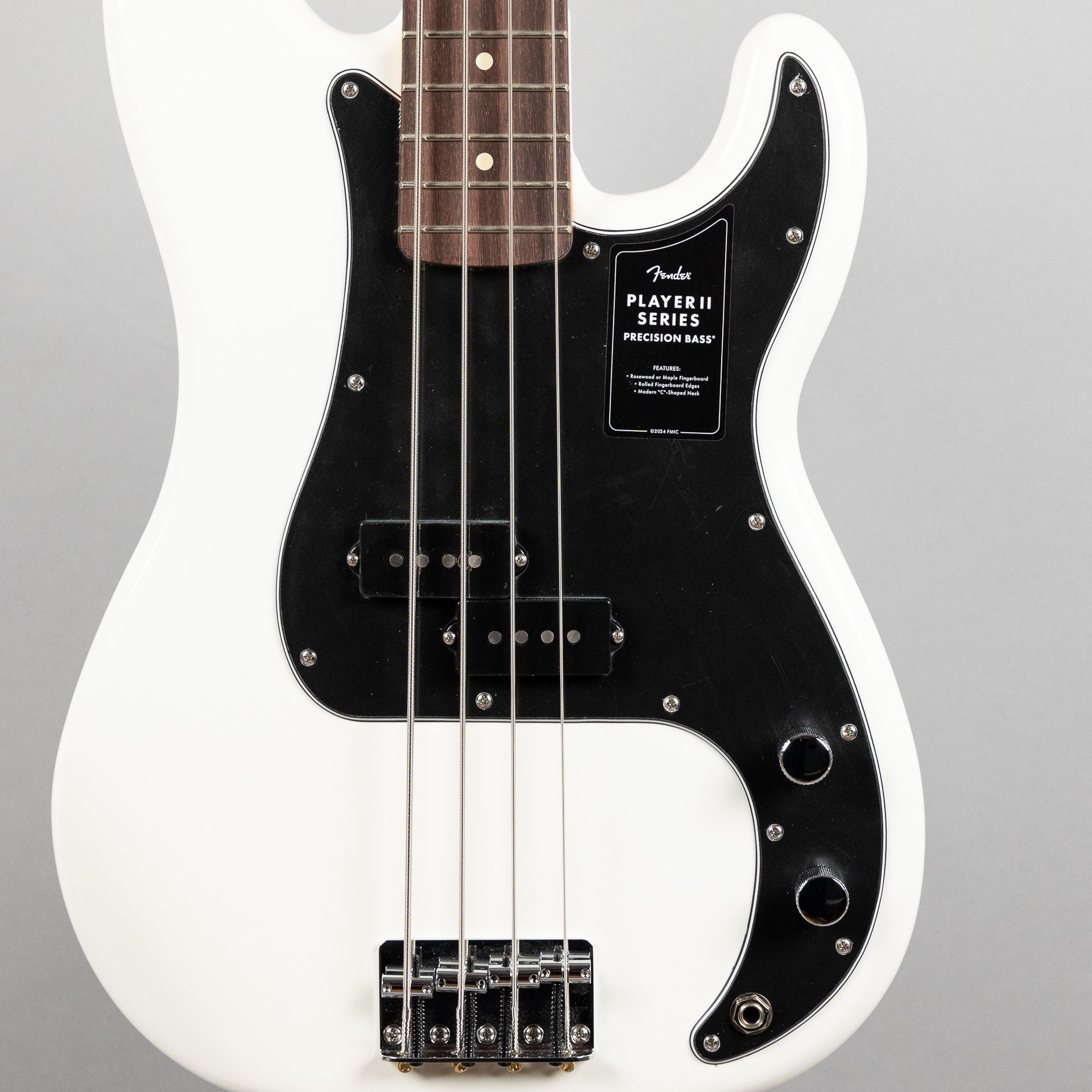 The Player II Precision Bass radiates timeless Fender charm, but under the hood, it's primed for today's players. Everything about the neck is designed for fast and fluid playability, from the Modern “C”-profile with silky satin urethane finish on the back to the comfy 9.5”-radius slab rosewood fingerboard with smooth rolled edges and 20 medium jumbo frets. A classic alder body is available in both timeless Fender finishes and never-before-seen colors unearthed from the archives. Player Series Alnico V Split-Coil P bass pickups offer sweet highs, musical mids and seismic lows that elevate any genre. An adjustable 4-saddle bridge, single-groove steel saddles and open-gear tuners ensure precise tuning stability for the flexibility to explore endless sonic possibilities.