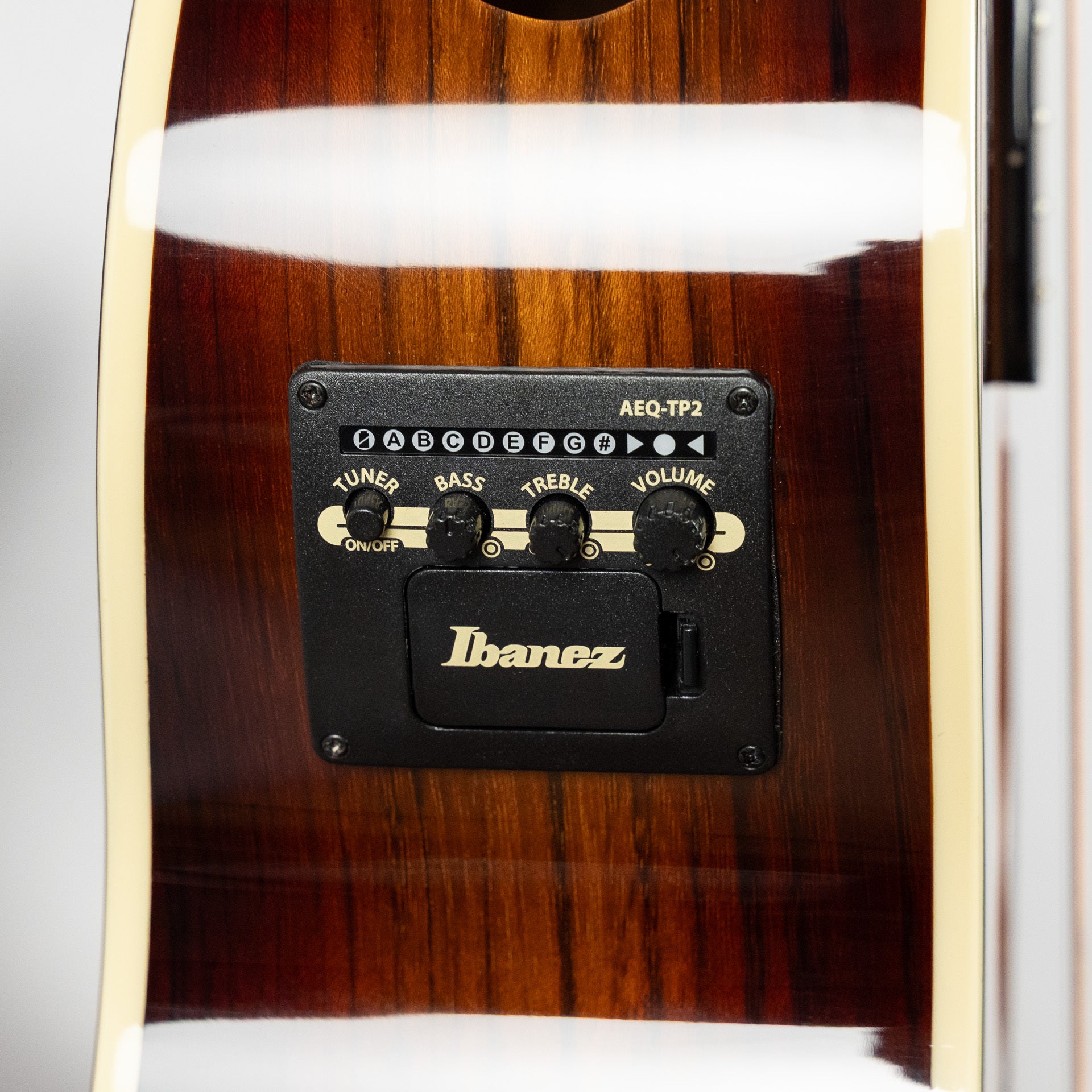 Ibanez AEQ-TP2 Preamp w/Onboard Tuner:The Ibanez AEQ-TP2 preamp provides the extra punch of on-board EQ along with a convenient and easy-to-read digital tuner and 2-band EQ, located on the instrument’s upper bout.