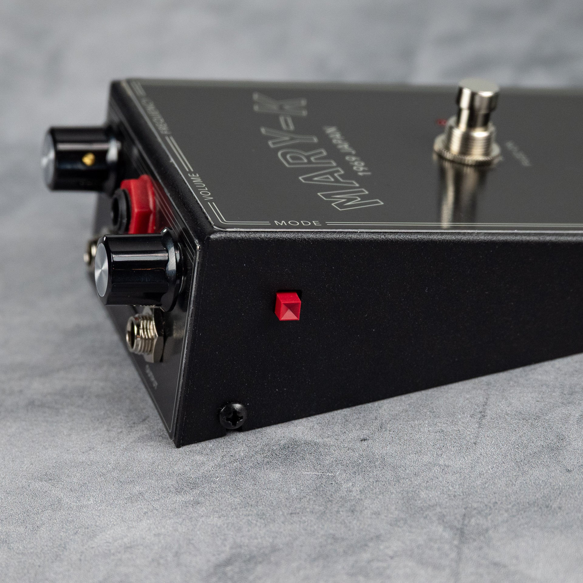 Kay Musical Instruments was founded by Henry “Kay” Kuhrmeyer on July 1, 1931. Although Henry quickly shifted production focus to all types of stringed instruments (including basses, violas and guitars), they didn’t enter the guitar pedal market until the late 1960s with a series of knobless, treadle-based delightfully odd plastic pedals. Each of these four units (the Fuzz Tone F1, Tremolo T1, Wah Wah W1 and Bass Boost B1) were housed in knobless, treadle-based enclosures allowing one parameter of each effect to be adjusted by foot. The Kay Fuzz Tone was most likely released in late 1968/early 1969. Initially designed as a low-cost-version of the Shin-ei/Univox Superfuzz, this fuzz is one of the Edge’s go-to pedals. Fifty-four years later, JHS is releasing our spin on the Kay Fuzz Tone: the Mary-K. We’ve even added knobs and an expression pedal output for those who want to use it as it was originally intended.