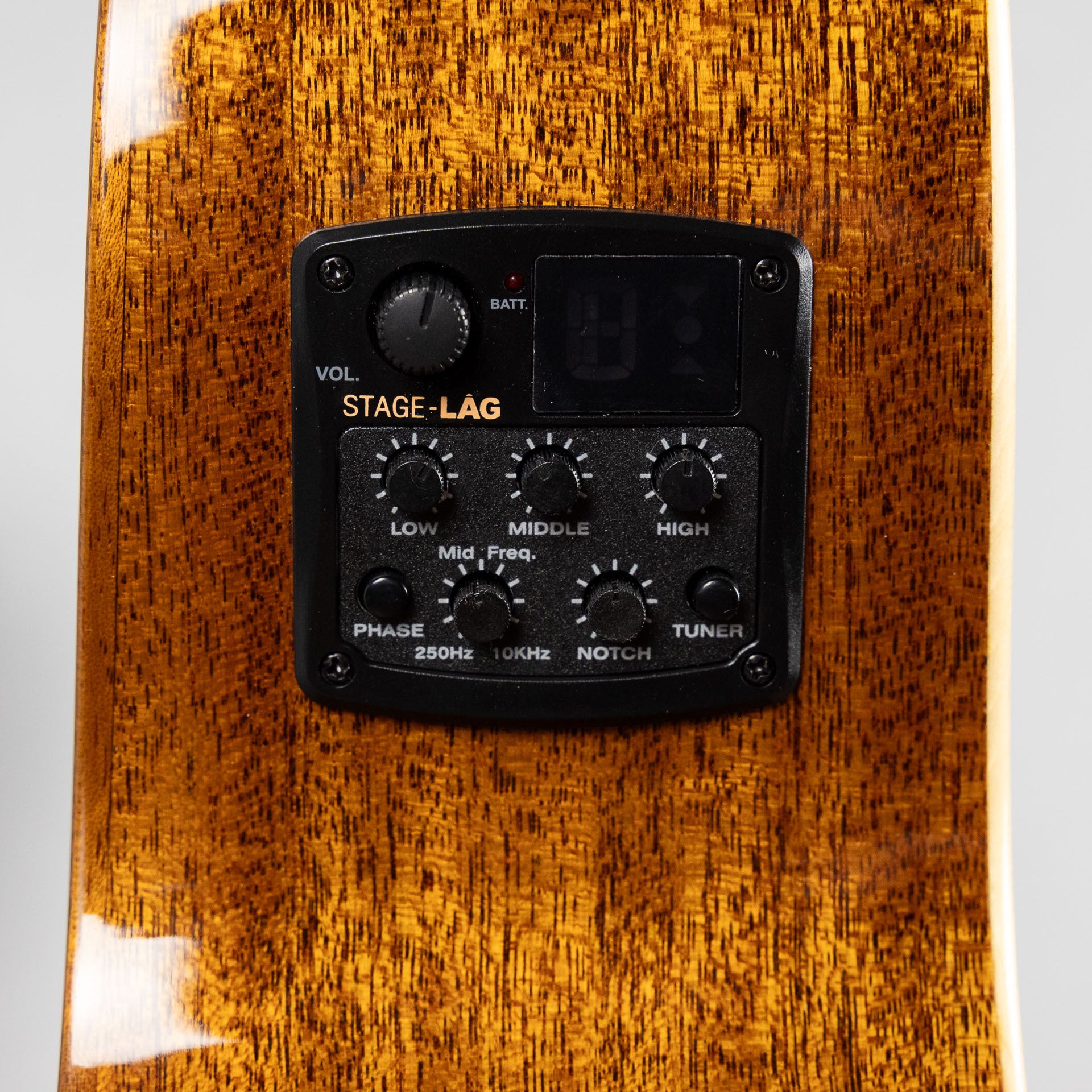 The T88ACE comes equipped with a Stage Lag preamp, delivering clear and dynamic amplified sound, faithfully reproducing the guitar's acoustic qualities. Its glossy finish emphasizes the beauty of the handpicked woods and adds an extra touch of sophistication.