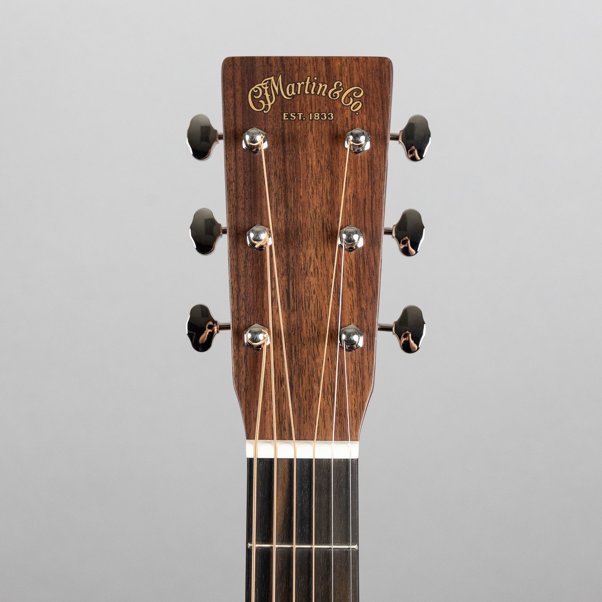 The Martin D-18 is one of the most iconic guitars in Martin’s lineup, trusted by legends of music and players like you for nearly a century. Known as a tried-and-true workhorse, its Dreadnought size delivers the bold, projective tone and strong bass that have shaped countless performances and recordings. Handcrafted with a solid spruce top and solid mahogany back and sides, the D-18 offers a full and balanced voice with bright trebles, a punchy midrange, and exceptional clarity in an iconic, no-frills design that has always delivered. The satin neck with a Golden Era (GE) Modified Low Oval profile, high-performance taper, and 25.4" scale length ensures unmatched comfort and playability. Elegant ebony details, including the bridge, bridge pins, and fingerboard with abalone dot inlays, complement its timeless style.