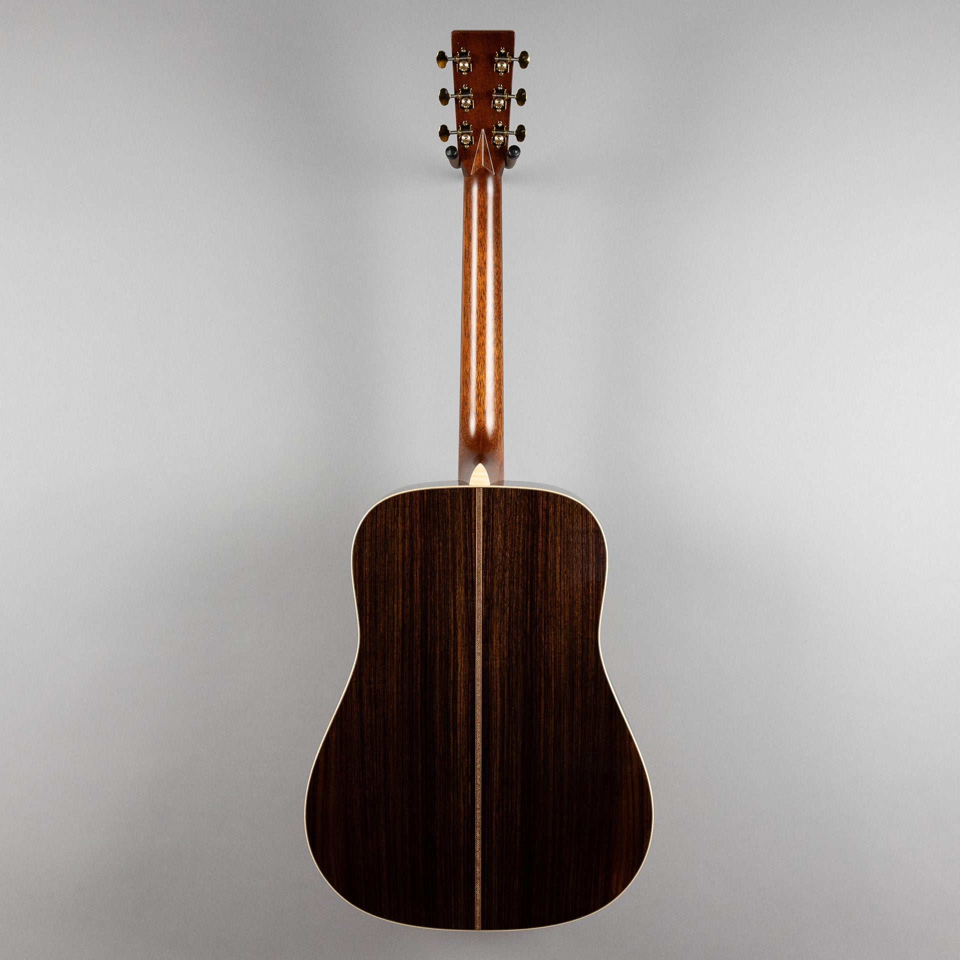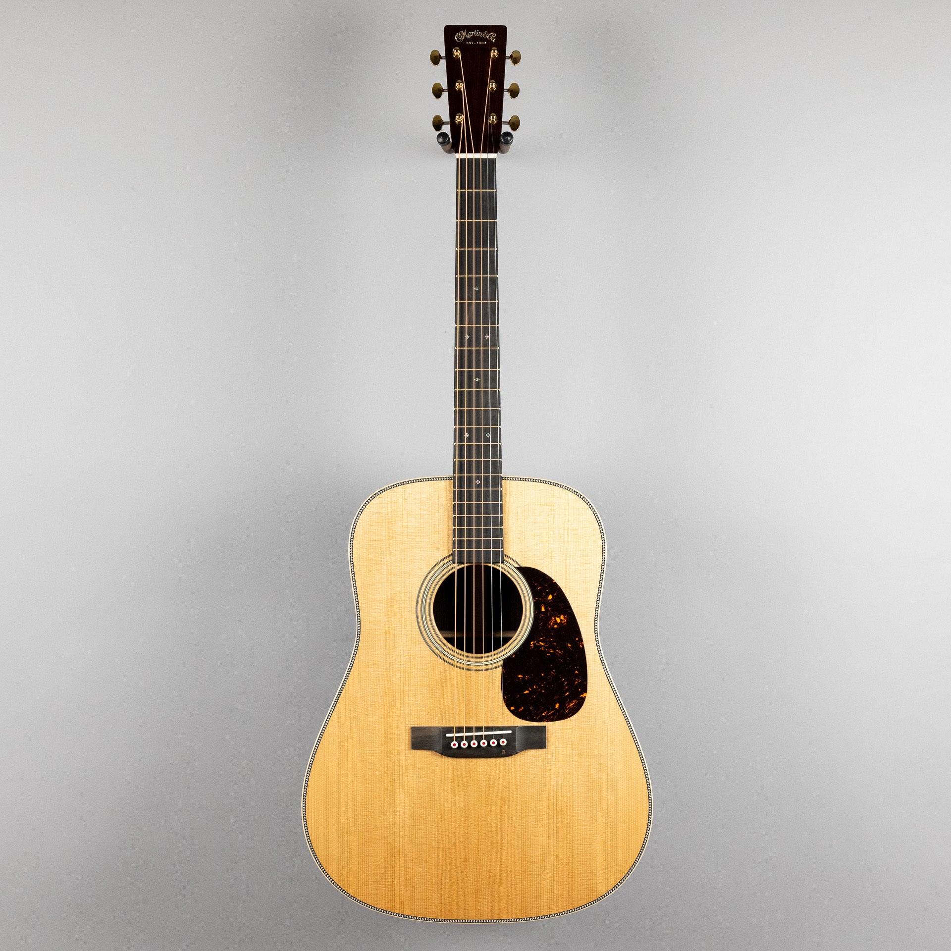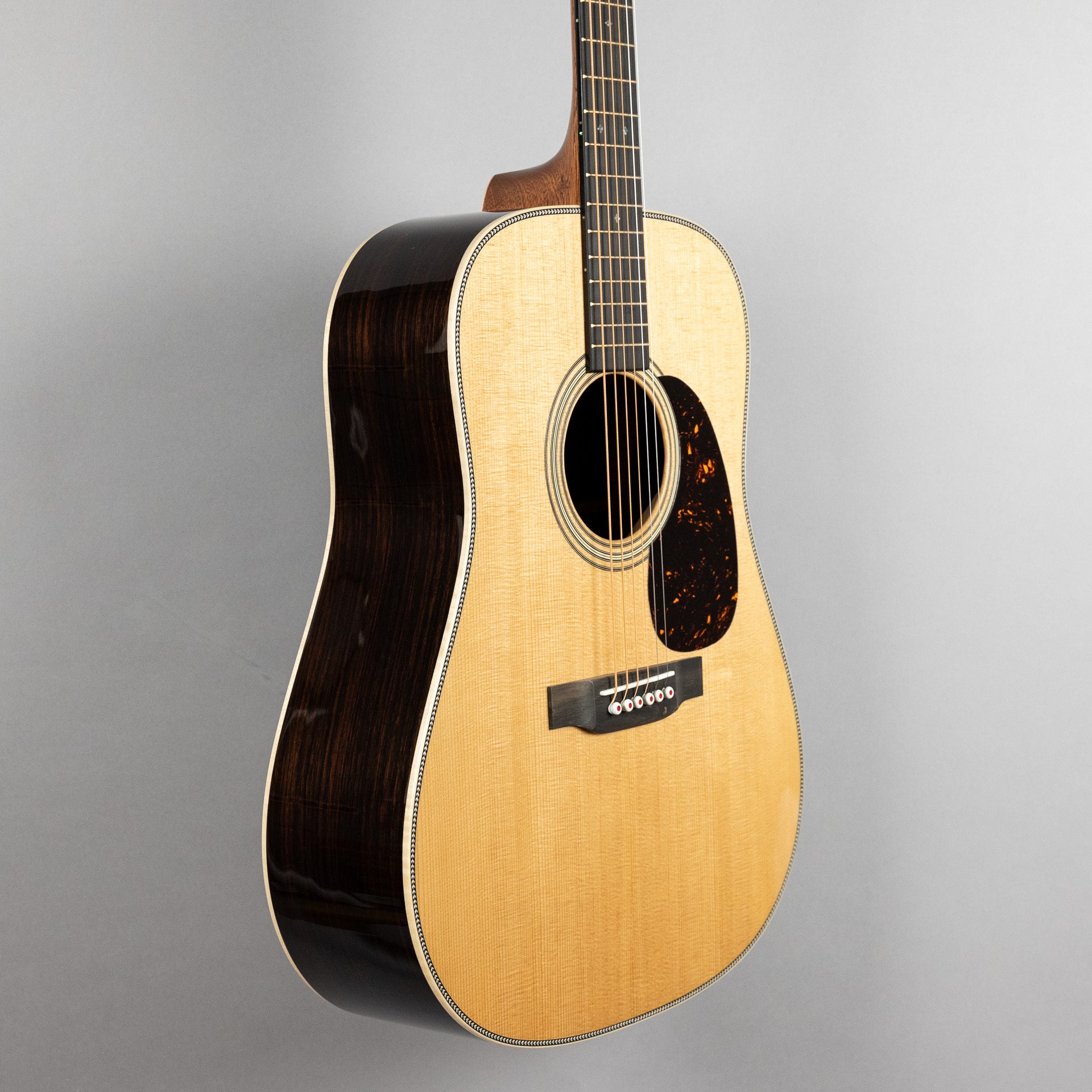 The D-28 Modern Deluxe is a new take on Martin Vintage. This guitar is packed with custom features and modern technology that you have to see, feel, and hear for yourself. The vintage appointments include a spruce VINTAGE TONE SYSTEM (VTS) top, a dovetail neck joint, and natural protein glue construction that give it the rich, fully aged Martin tone that has inspired generations. The look is unlike anything in Martin's production line to date with European flamed maple binding, stylish gold frets, gold open-gear tuners, and a unique 1930s style script logo inlaid in pearl on the headstock. Some ultra-modern features include Liquidmetal bridge pins with red dots and a composite carbon fiber bridgeplate that boosts volume. And they’ve included a new neck shape that is slightly asymmetrical for maximum hand comfort up and down the fretboard. This guitar is anything but standard.
