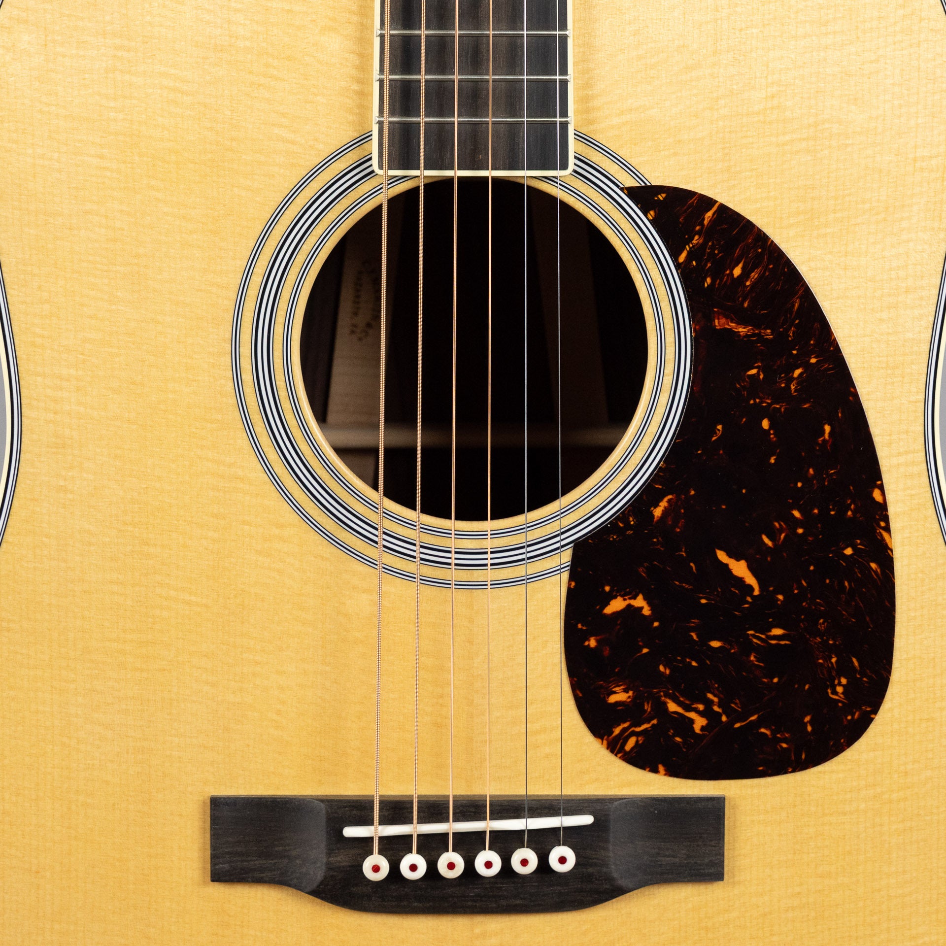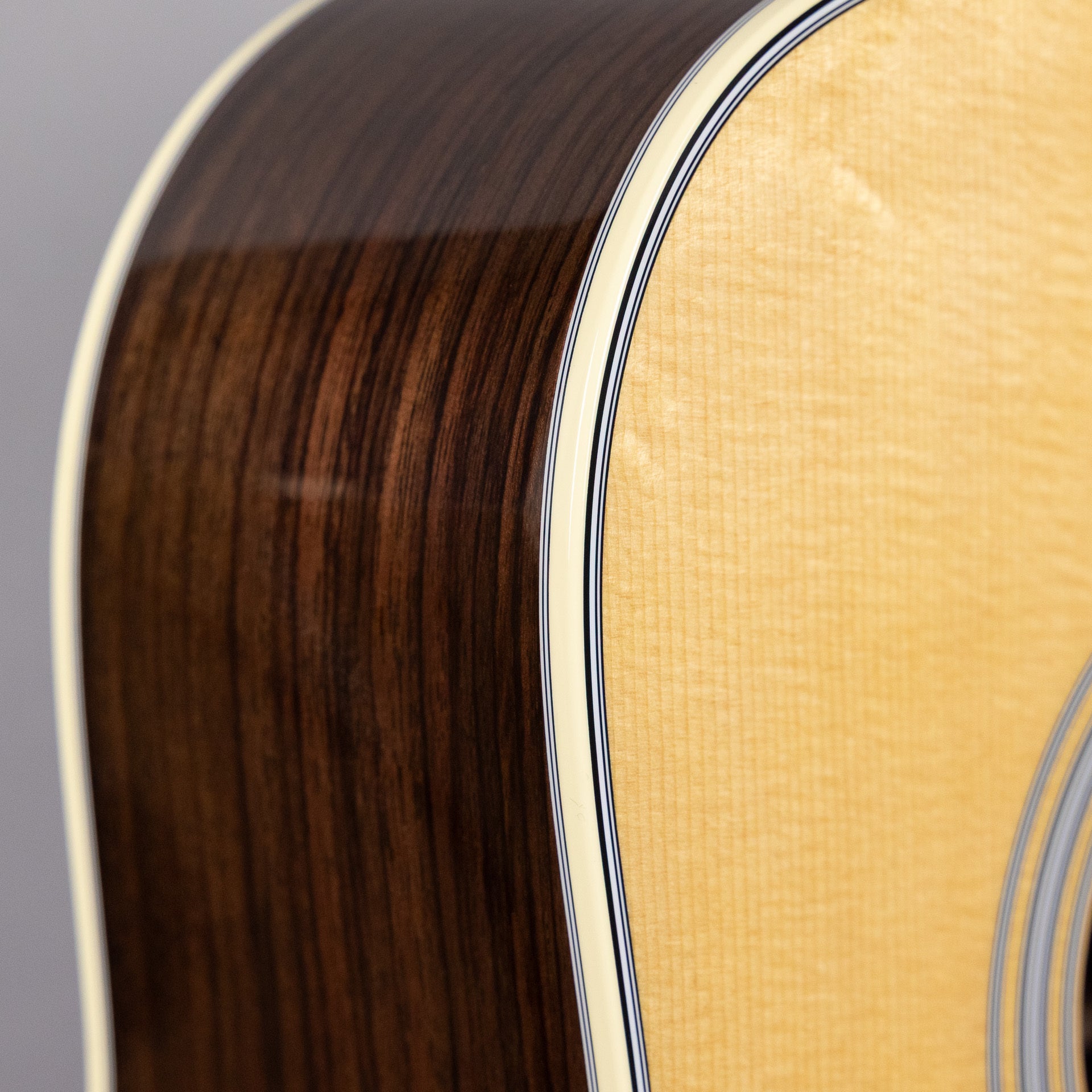 The Martin D-35 is a unique and trusted classic, first introduced in the mid-1960s and played by countless music legends ever since. Its Dreadnought body size delivers a bold, projective sound with strong bass, clear trebles, and rich overtones, making it a versatile choice for players of all styles. Handcrafted with a solid spruce top and solid East Indian rosewood back and sides, the D-35 stands out with its iconic three-piece back and lighter, non-scalloped 1/4" bracing, offering a balanced yet powerful tone. The satin neck, featuring a Golden Era (GE) Modified Low Oval profile, high-performance taper, and 25.4" scale length, ensures smooth, effortless playability. Complete with antique white binding, a bound ebony fingerboard with mother of pearl dot inlays, an ebony bridge with bone pins, and chrome enclosed gear tuners, the D-35 is built to carry on its legacy in your hands.