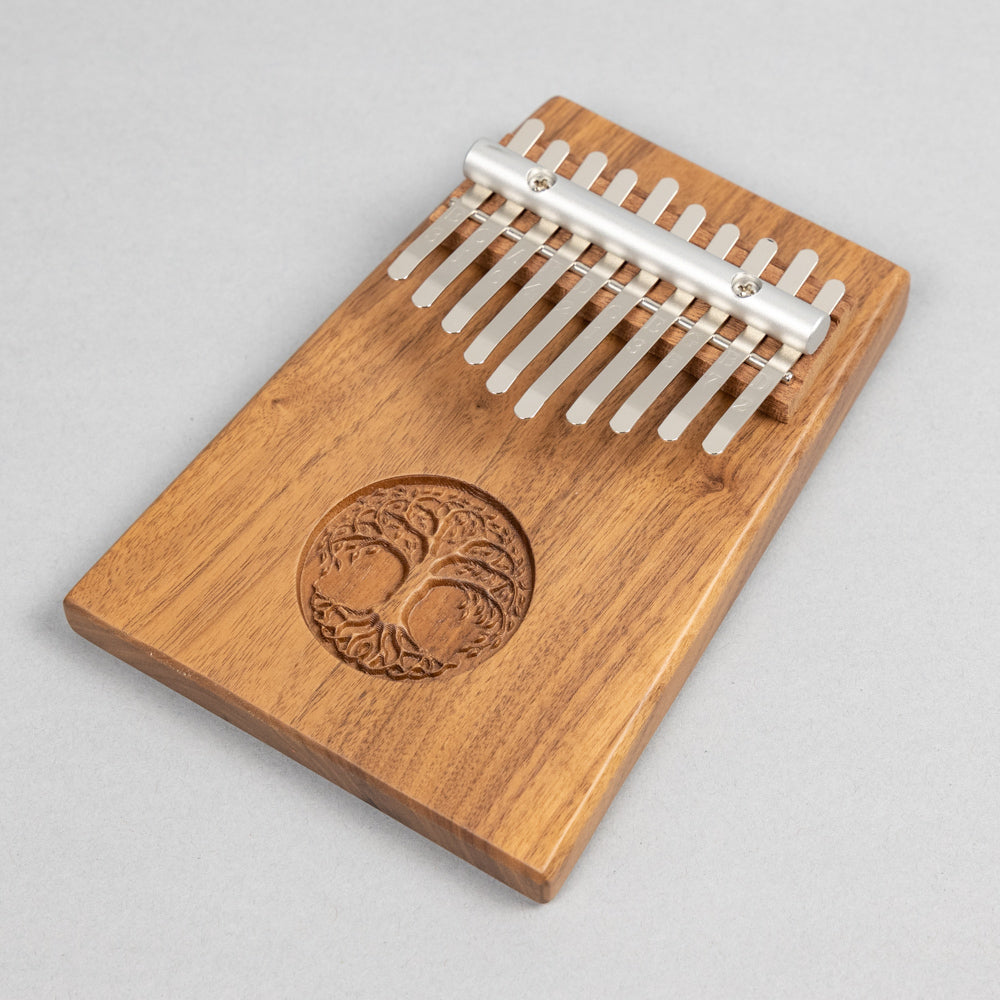 The Meinl Sonic Energy Solid Kalimba (sometimes called a Thumb Piano) is a soft-sounding melodic instrument that fills the space around you with ethereal tones as you pluck the notes. This kalimba has 10 steel keys (tines) on the scale of C Major. All the pitches complement each other, meaning you will never play a wrong note. This instrument is easy to play and does not require any musical background. It's great for sound healing therapy, meditation, and yoga, also teachers can use them to corral a classroom. Of course, musicians can have their fun with them, too.