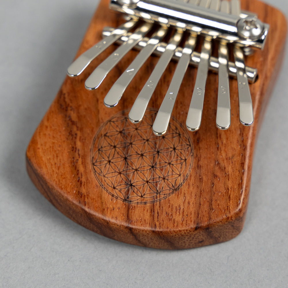 Made with beautiful solid Red Zebrawood in a matte finish featuring an exquisite "Flower of Life" carving.