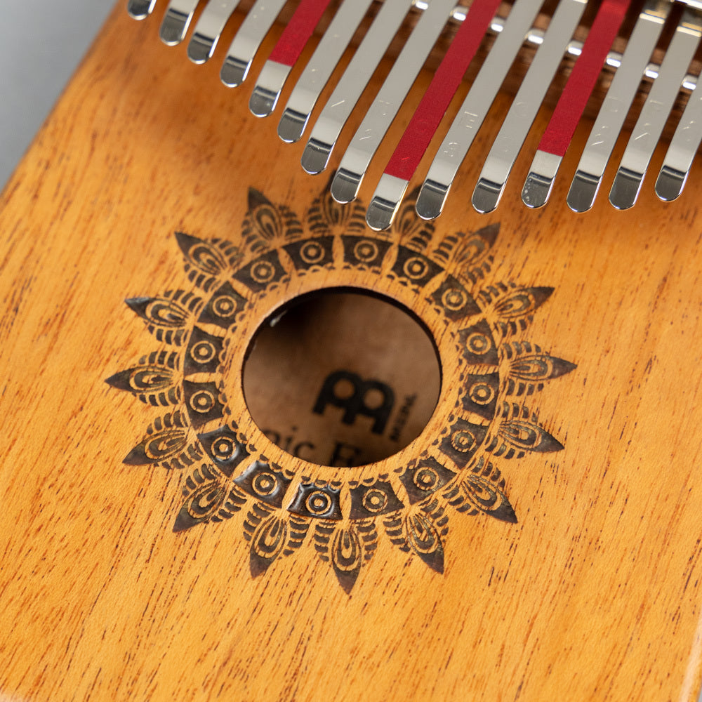 The Meinl Sonic Energy Soundhole Kalimba (sometimes called a Thumb Piano) is a soft-sounding melodic instrument that fills the space around you with ethereal tones as you pluck the notes. This kalimba has 17 steel keys (tines) on the scale of C Major. This instrument is easy to play and does not require any musical background. It's great for sound healing therapy, meditation, and yoga, also teachers can use them to corral a classroom. Of course, musicians can have their fun with them, too.