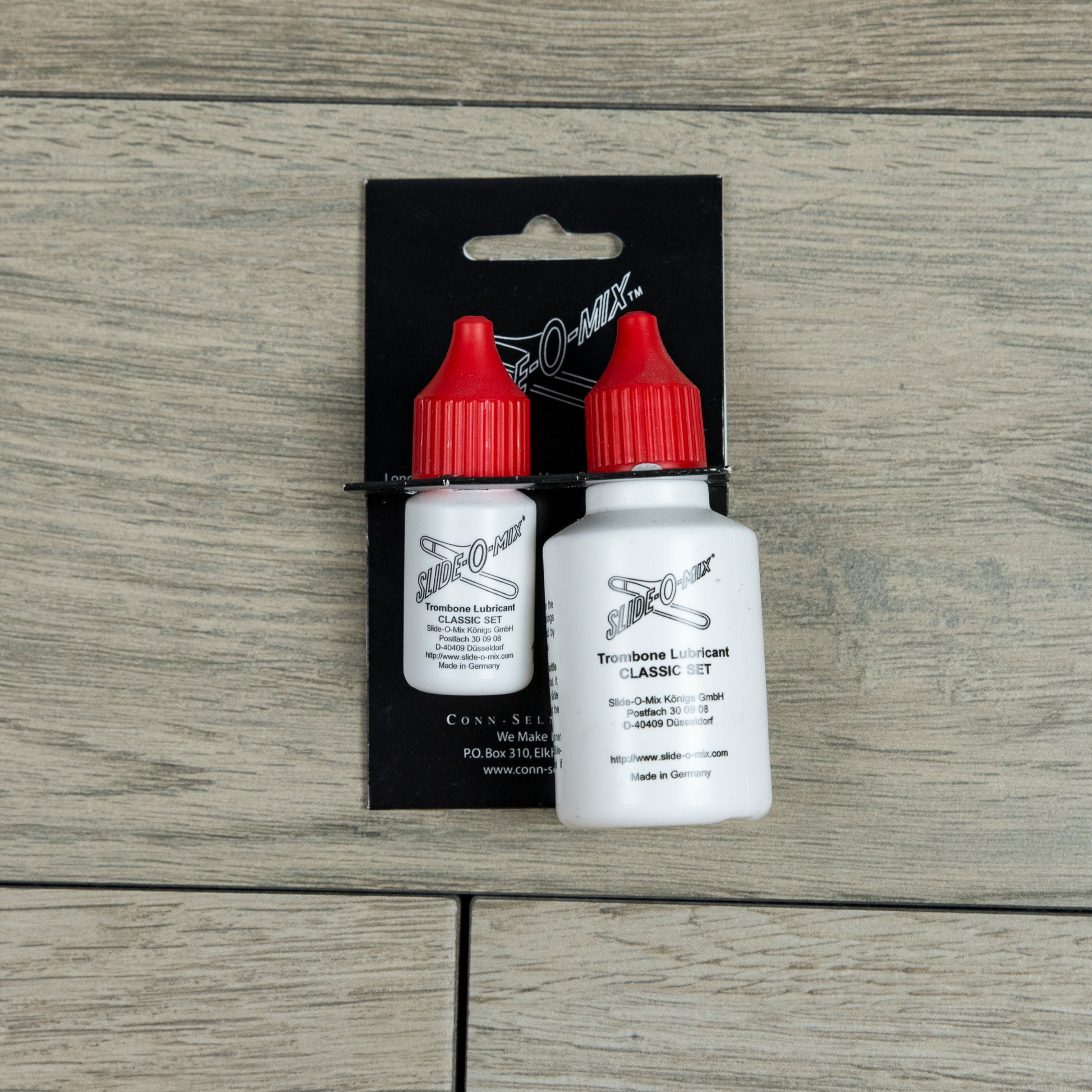 Slide-O-Mix Trombone Lubricant gives your slide a fantastic glide. It is a 2-component liquid lubricant, which adheres very well to the slide surface. There is no sticking or stopping of the slide. Slide-O-Mix is very economical in use. Very helpful, especially for beginners, is the fact, that no faults in dosing are possible. To meet all different dosing habits, you can get both components of the set also single.