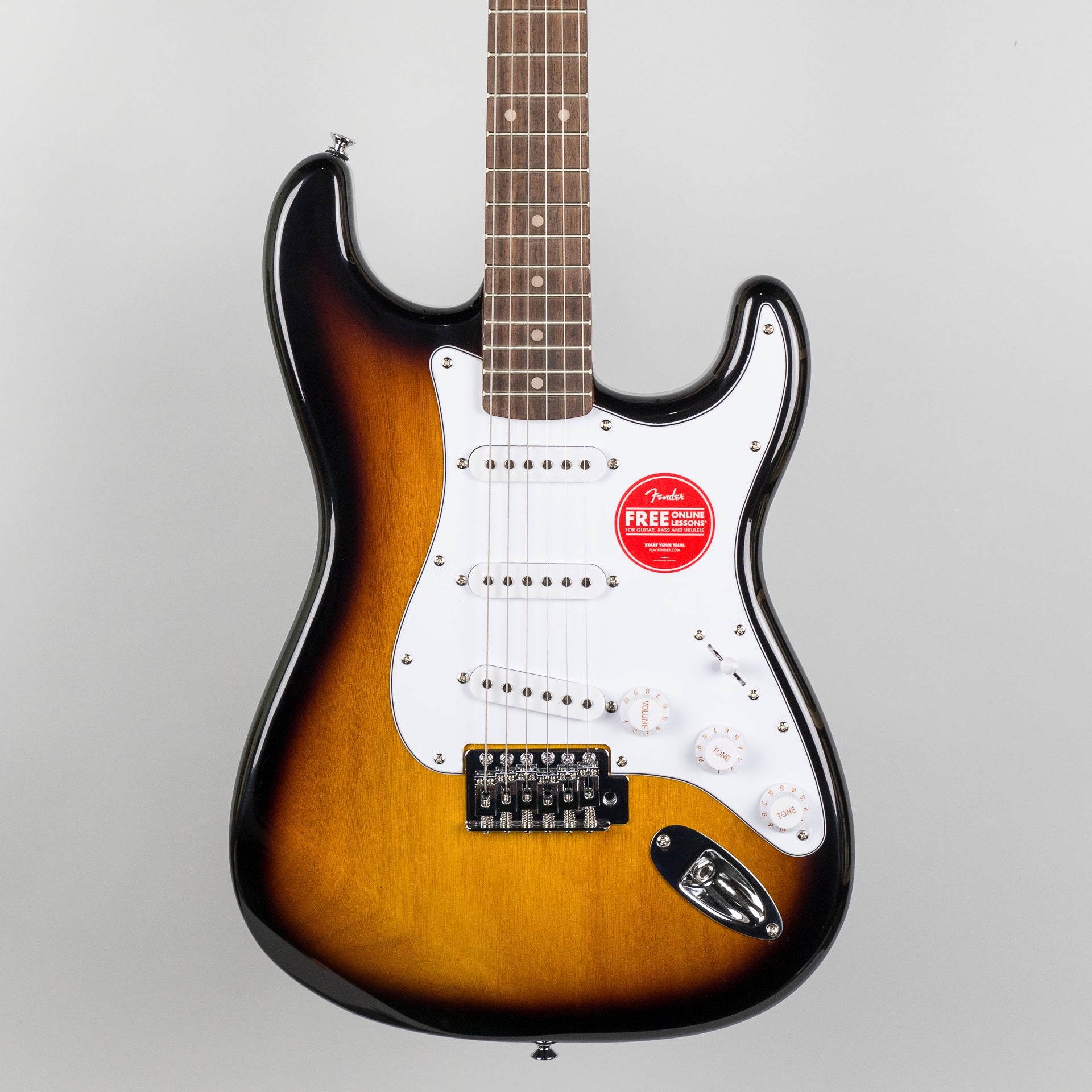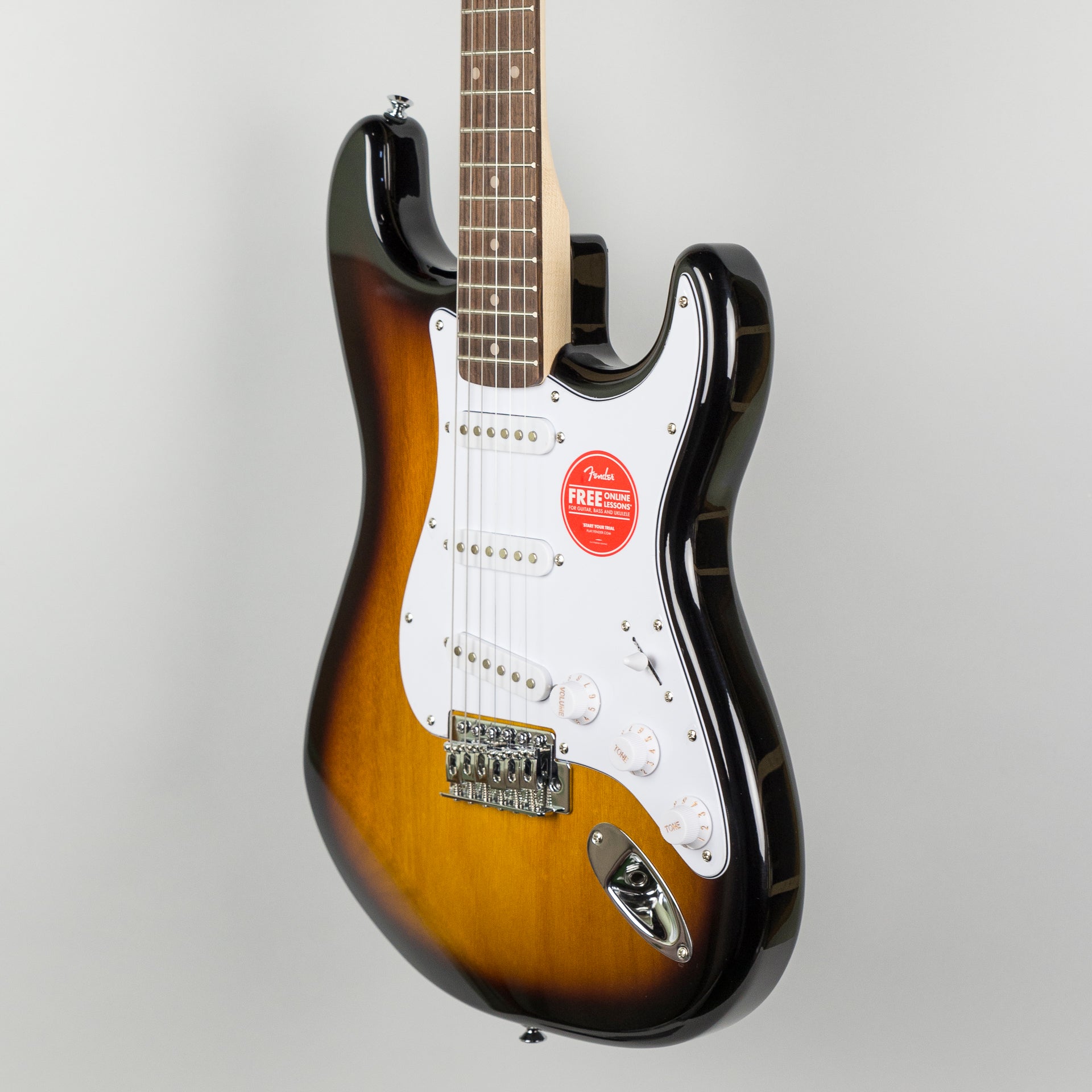 A superb gateway into the time-honored Fender® family, the Squier® Affinity Series™ Stratocaster® delivers legendary design and quintessential tone for today’s aspiring guitar hero. This Strat® features several player-friendly refinements such as a slim and comfortable “C”-shaped neck profile, a vintage-style tremolo bridge for expressive string-bending effects and sealed die-cast tuning machines for smooth, accurate tuning. Loaded with a trio of Squier single-coil Strat pickups with 5-way switching for genre-defying sonic variety, this model is ready to accompany any player at any stage.