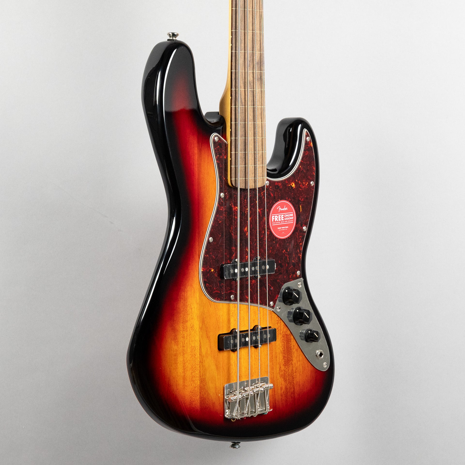 A tribute to the decade of its birth, the Classic Vibe '60s Jazz Bass Fretless combines the luxurious playability that made it famous with the versatility and massive tone of its dual Fender-Designed alnico single-coil pickups. Player-friendly features include a slim, comfortable "C"-shaped neck profile with an easy-playing fretless fingerboard with fret lines for accurate finger placement and a vintage-style bridge with threaded saddles. This throwback Squier model also features 1960s-inspired headstock markings, rich-looking nickel-plated hardware and a slick vintage-tint gloss neck finish for an old-school vibe.