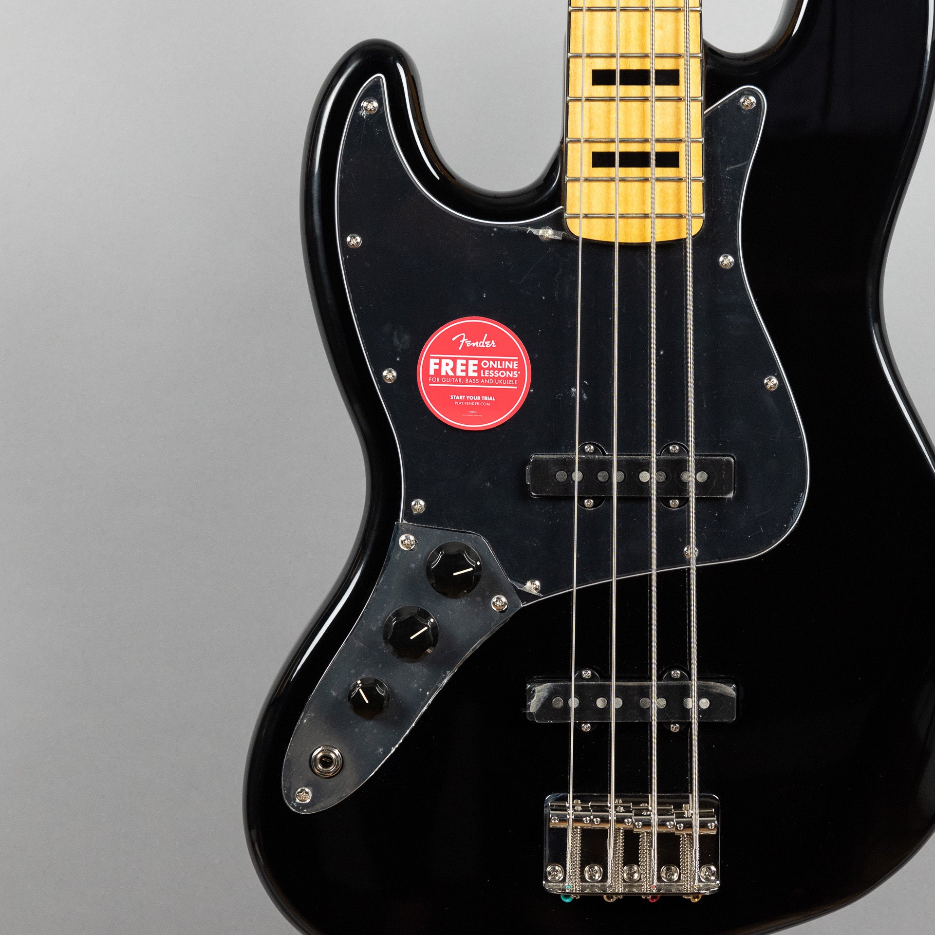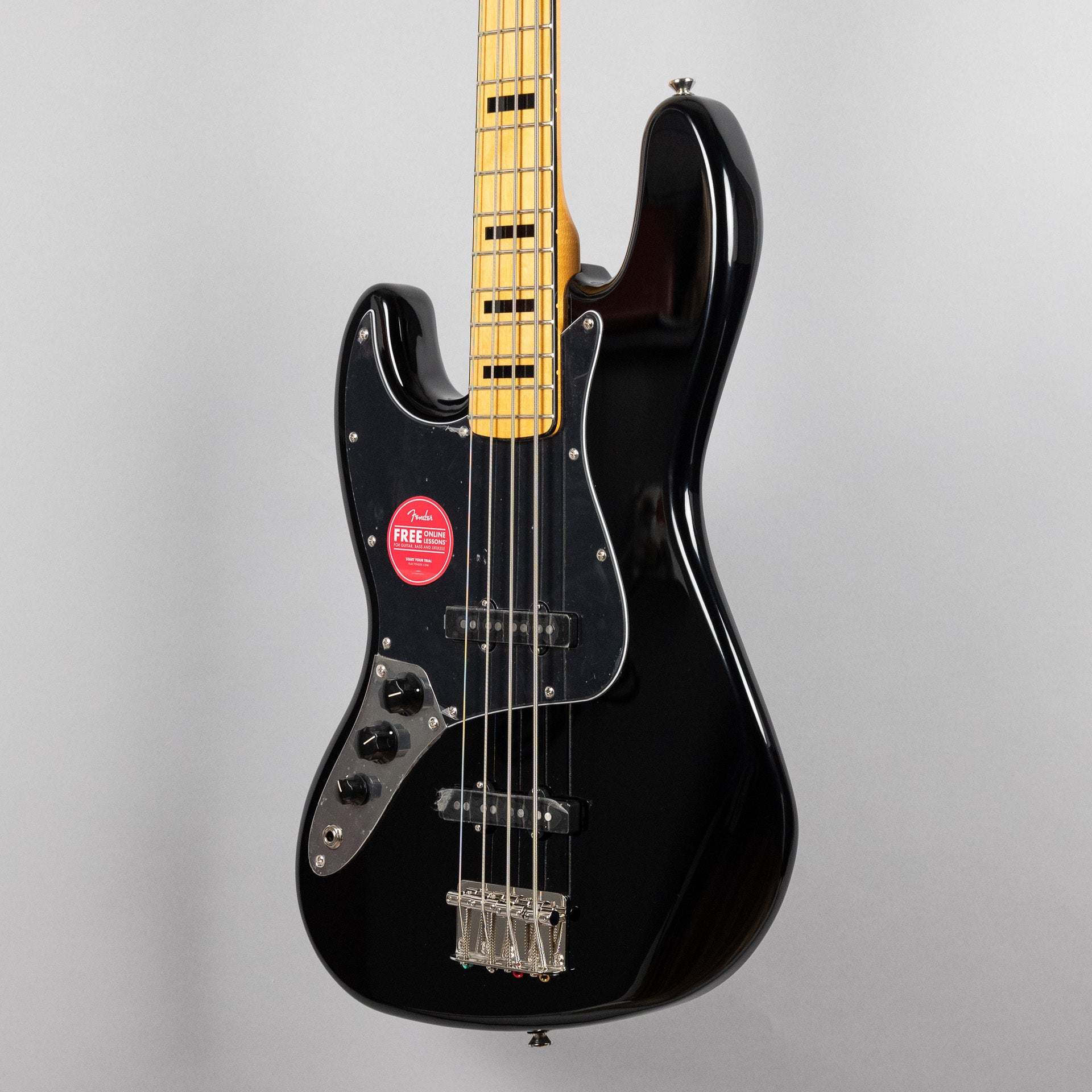 The Classic Vibe '70s Jazz Bass is a nod to the 1970s evolution of the J Bass, combining the luxurious playability that made it famous with the versatility and massive tone of its dual Fender-Designed alnico single-coil pickups. Player-friendly features include a slim, comfortable "C"-shaped neck profile with an easy-playing 9.5"-radius fingerboard and narrow-tall frets, as well as a vintage-style bridge with slotted barrel saddles for solid string stability. This throwback Squier model also features 1970s-inspired headstock markings, rich-looking nickel-plated hardware and a slick vintage-tint gloss neck finish for an old-school vibe.