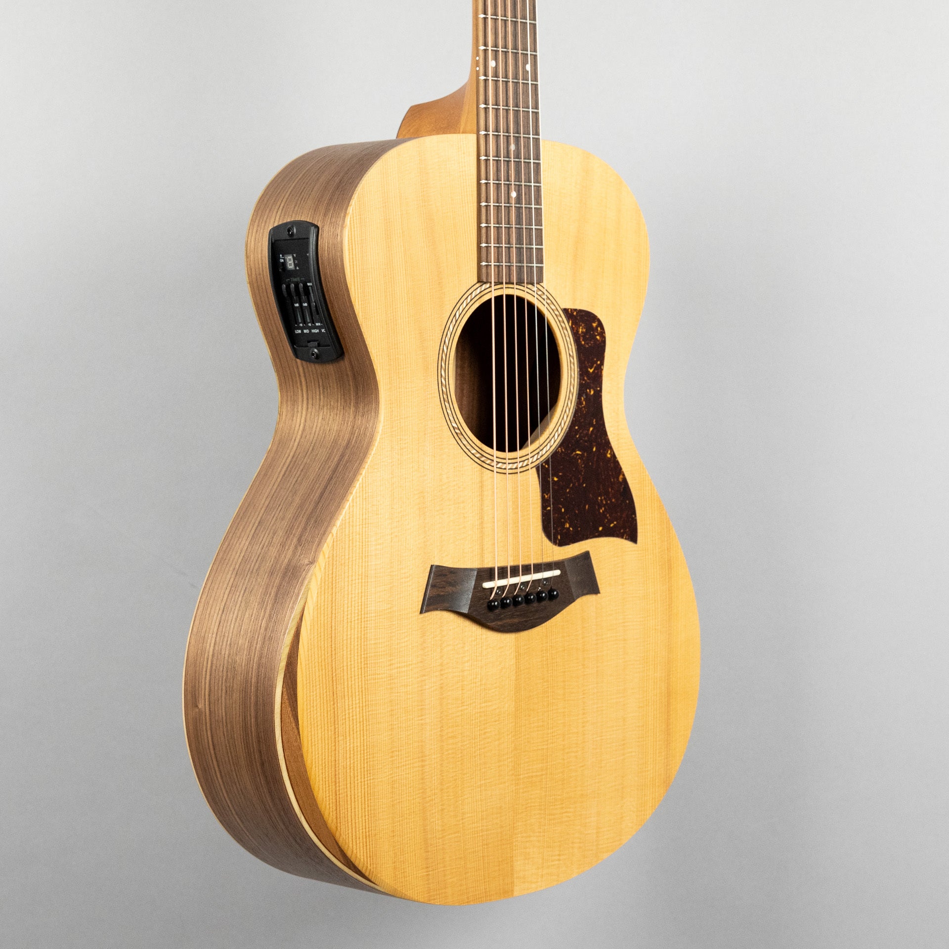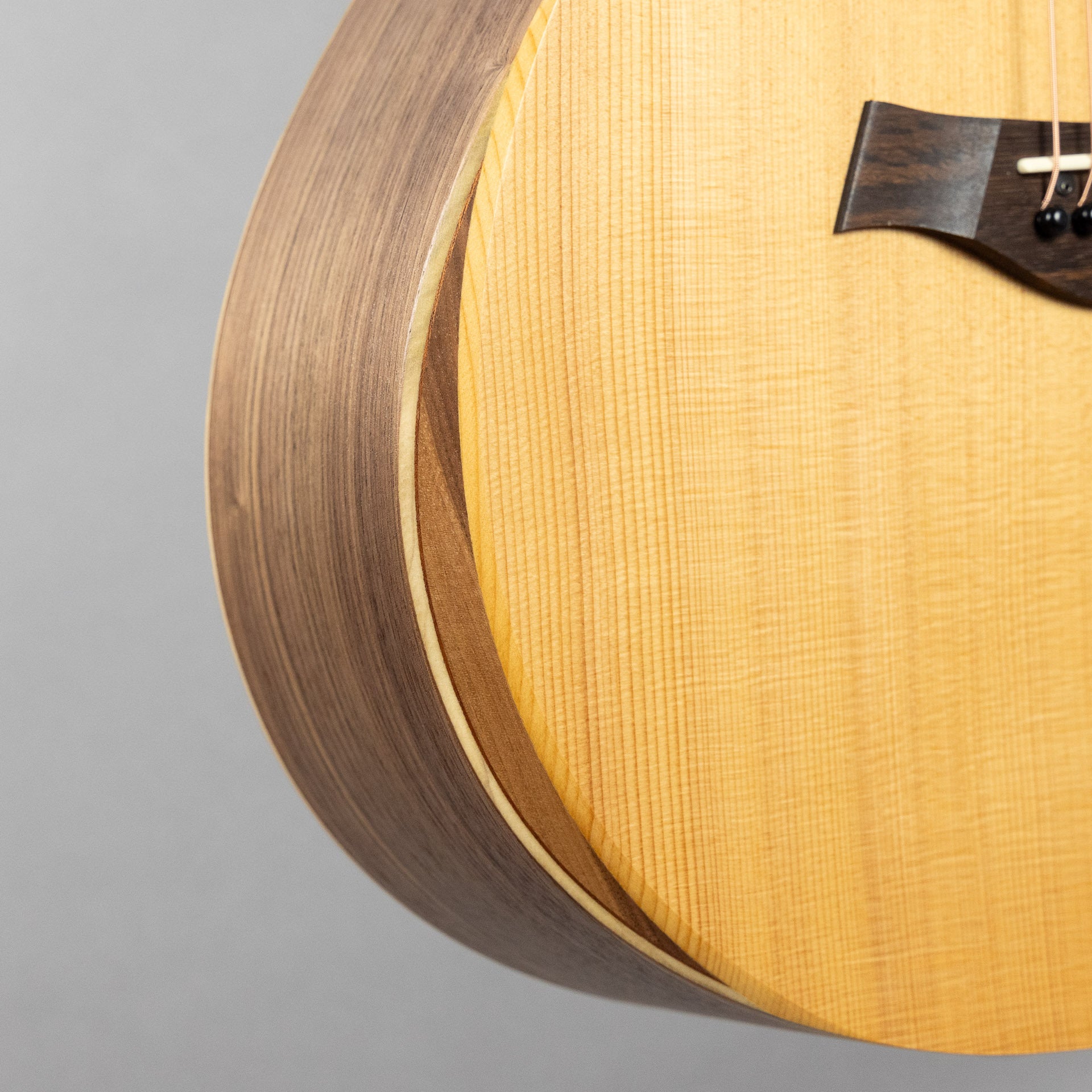 Layered Walnut Back & Sides: Walnut’s crisp highs are balanced by a deep, woody low end that emerges as the guitar is played in.