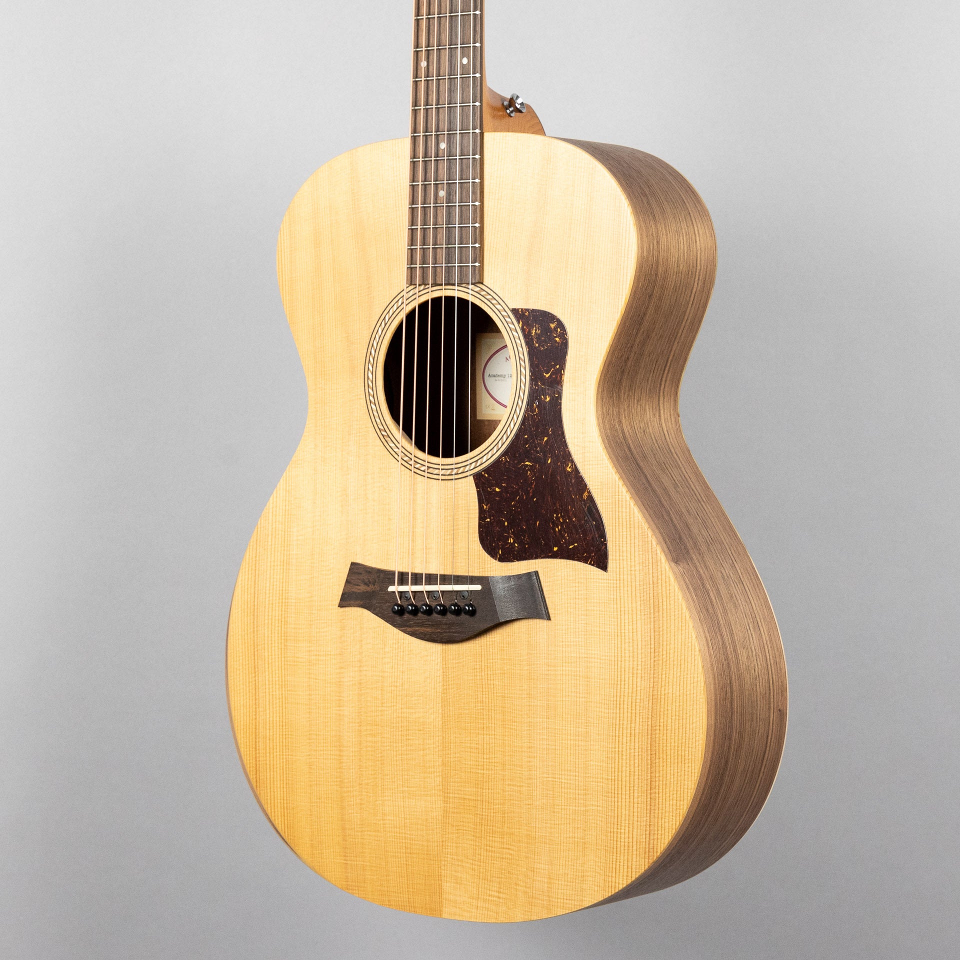 Built with a solid spruce top and layered walnut back and sides, the compact, inviting Academy 12e offers an approachable playing experience for guitarists of all skill levels. The torrefied spruce top, treated with Taylor's special roasting process, serves up bold sound with plenty of projection and a touch of aged-in warmth and sweetness. The armrest carved into the lower bout makes for a more comfortable feel for your strumming arm, while the Taylor neck features a slender profile that accommodates your fretting hand, making this a great choice for new learners. With built-in ES-B electronics for easy amplification and a padded gig bag for transportation, the Academy 12e is more than ready for the next step in your musical journey.