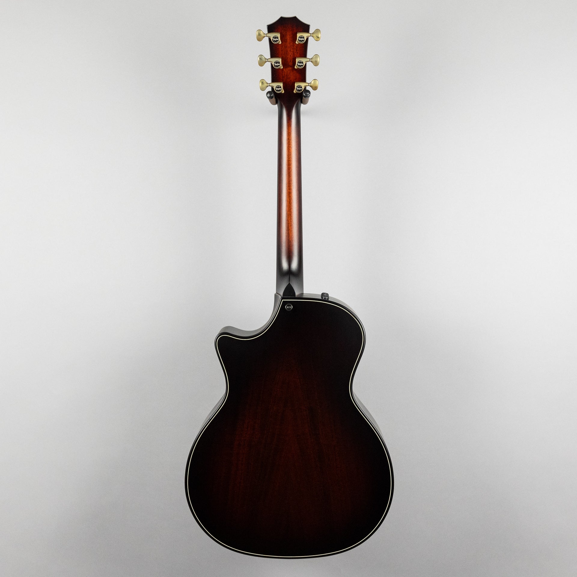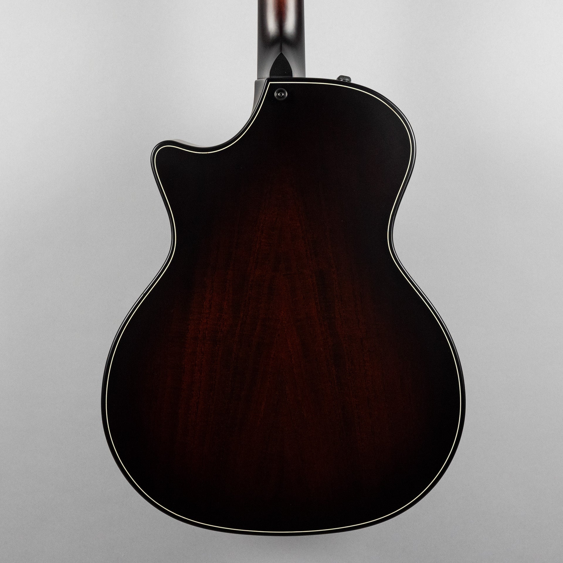 Beveled Cutaway: Taylor's beveled cutaway design provides a more player-friendly feel for guitarists who utilize every inch of the fretboard. It features a compound design with a smoothened edge along the corner of the body between the end of the cutaway and the neck heel, providing a more comfortable feel for the fretting hand.