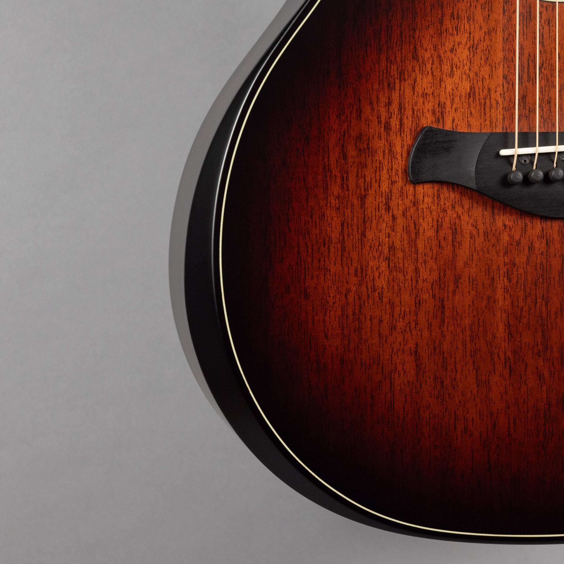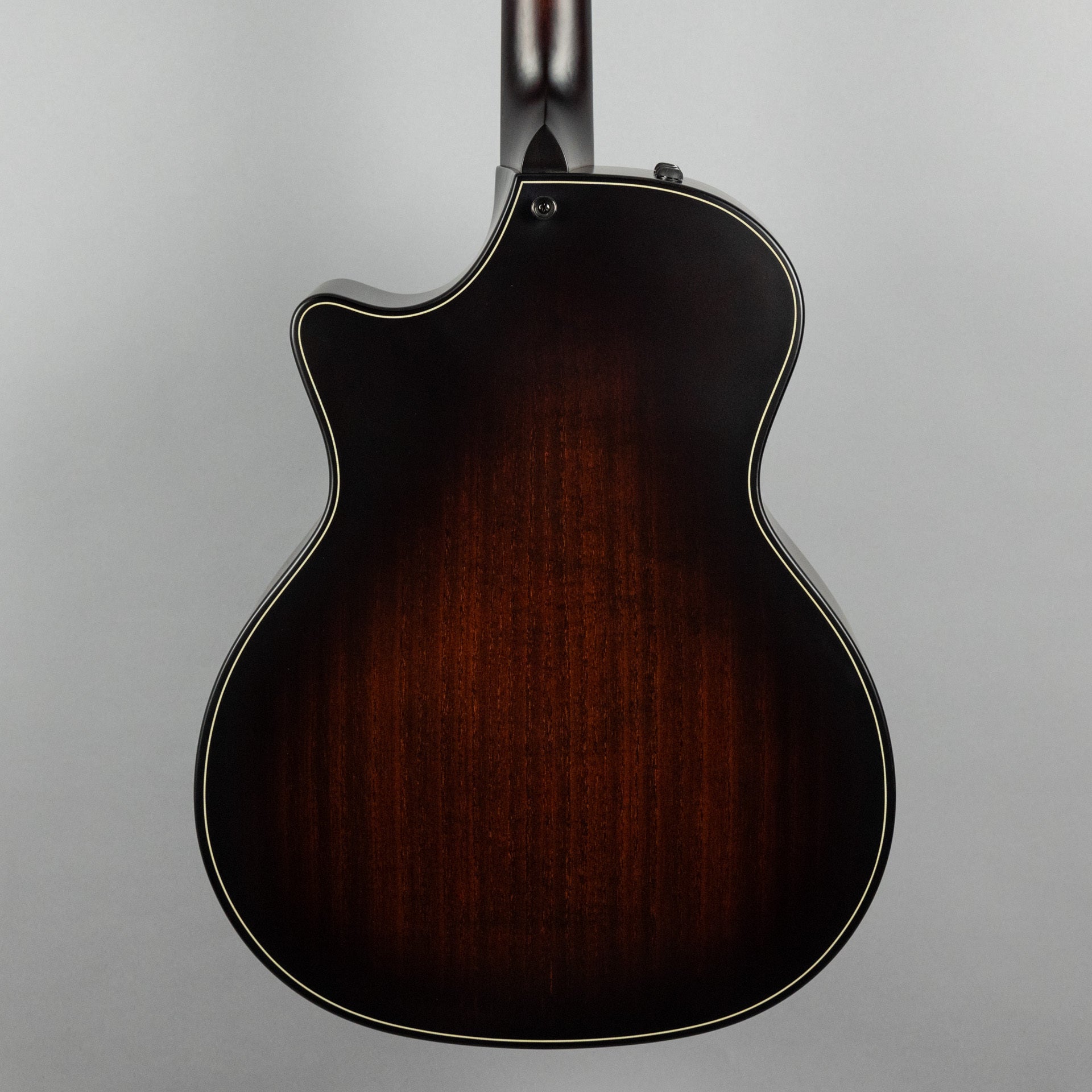Beveled Cutaway: Taylor's beveled cutaway design provides a more player-friendly feel for guitarists who utilize every inch of the fretboard. It features a compound design with a smoothened edge along the corner of the body between the end of the cutaway and the neck heel, providing a more comfortable feel for the fretting hand.