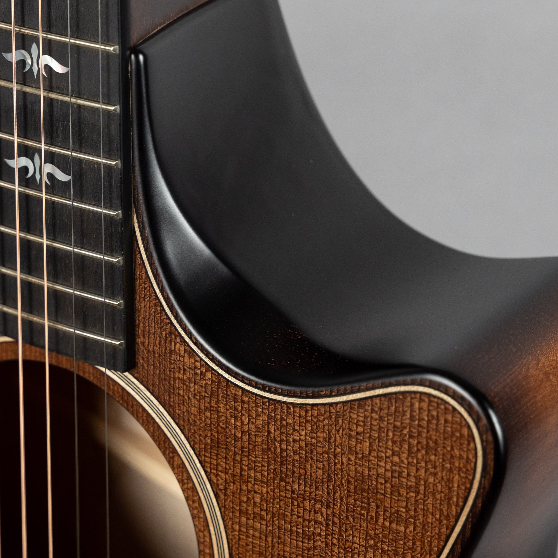 Torrefied Spruce Top:Treated with Taylor's special roasting process, torrefied spruce tops deliver all the clarity, balance and projection you’d expect from a traditional spruce top with an extra dash of warmth and played-in depth.