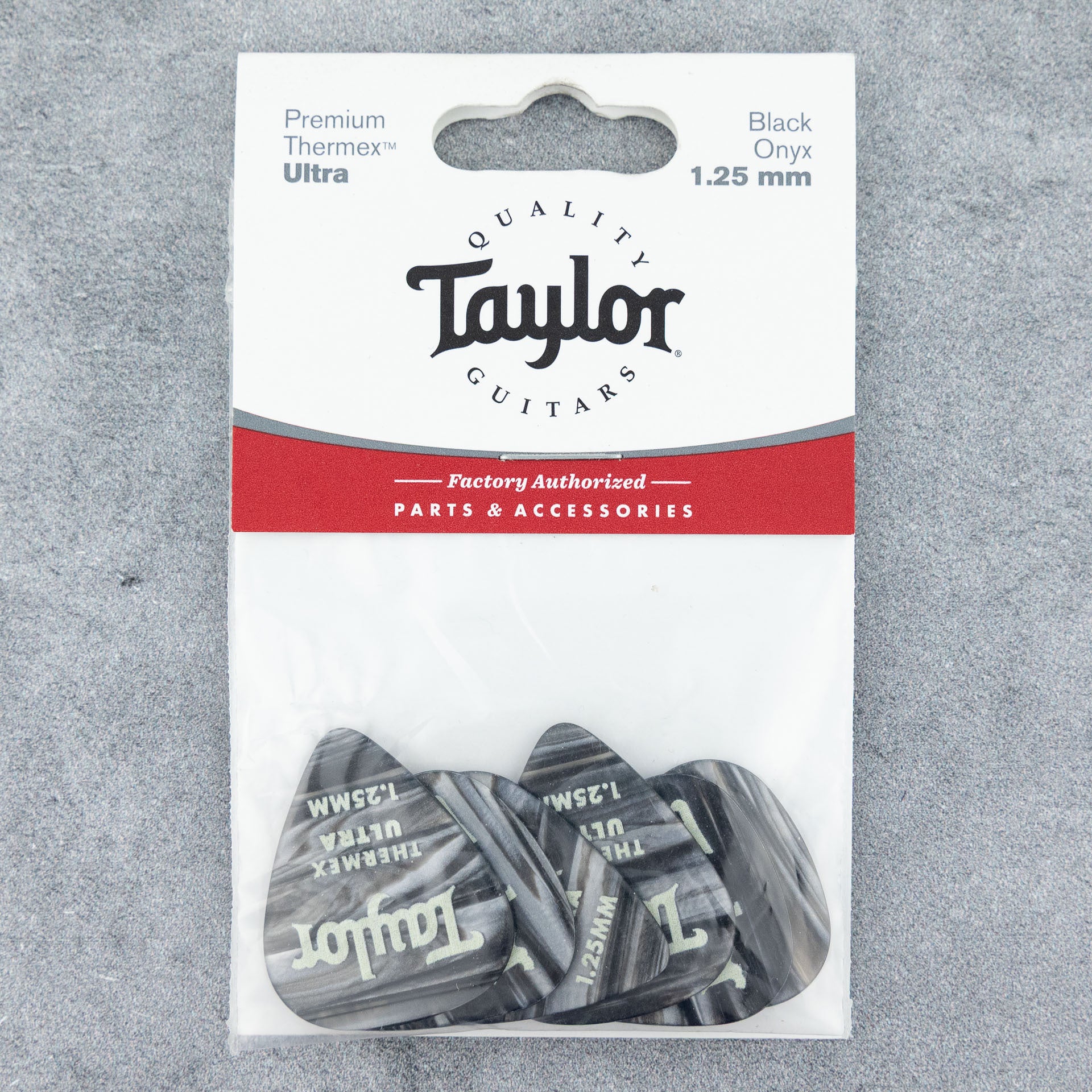 Taylor Premium Thermex Black Onyx Picks are the original Taylor DarkTone guitar pick, made with an exclusive thermo-bonding process designed to produce a richer, warmer guitar tone. Thermex picks are available in the classic 351 shape and are precision-cut in 1.0mm, 1.25mm and 1.5mm gauge sizes. Made in the USA.