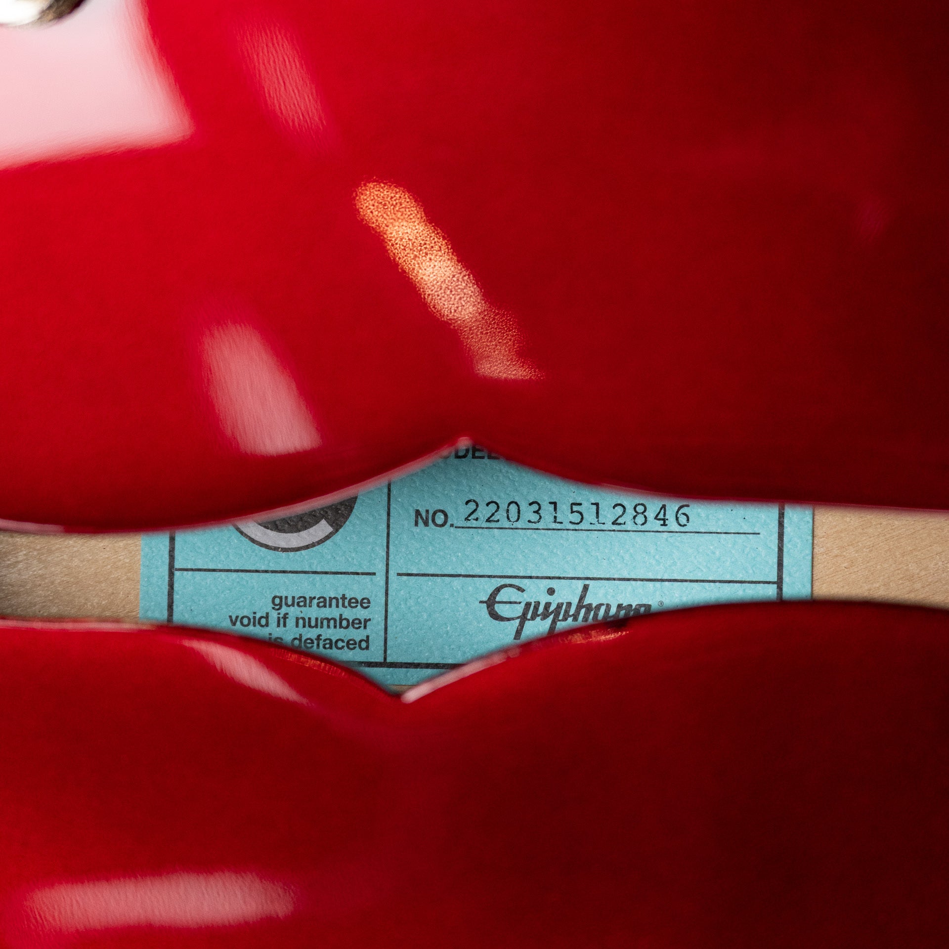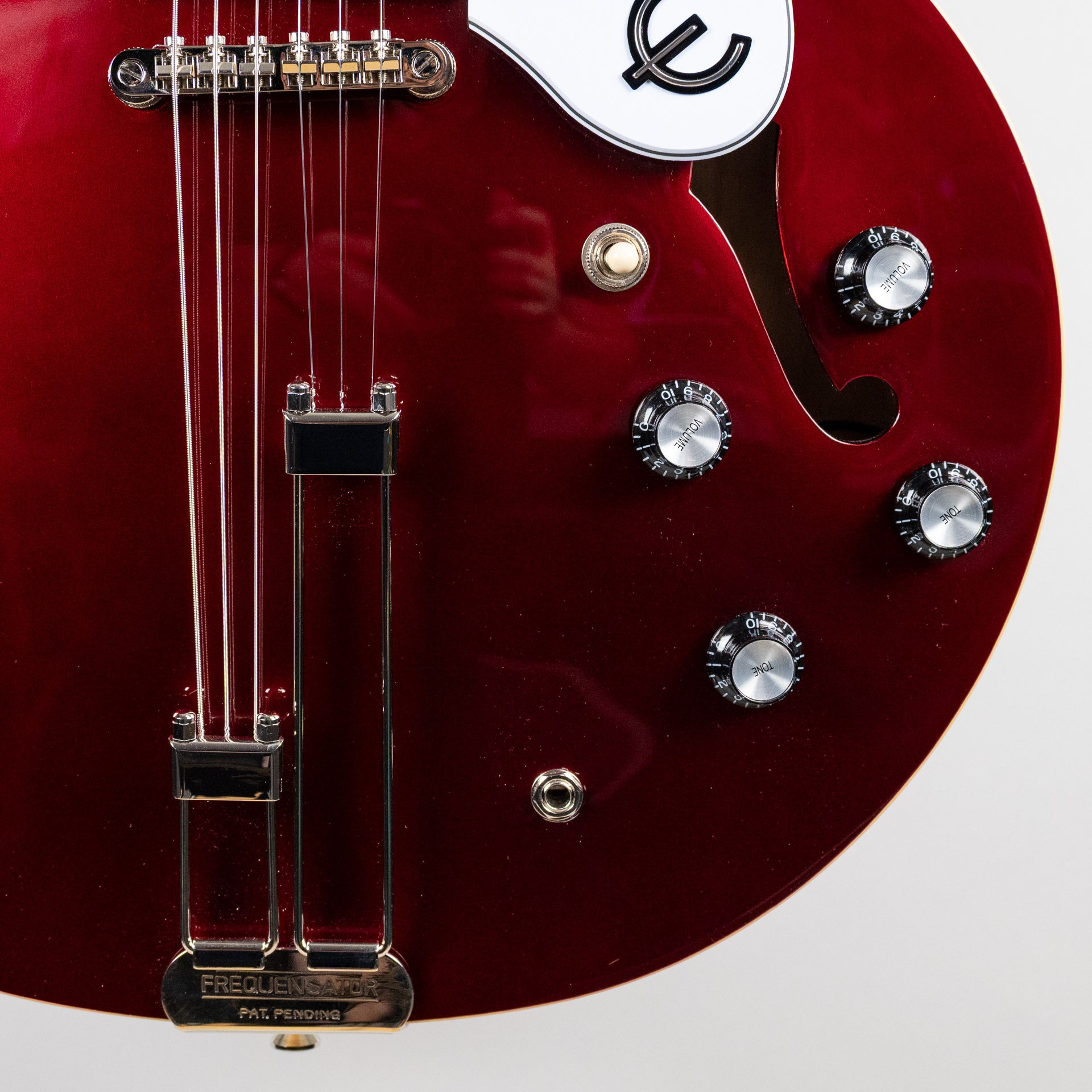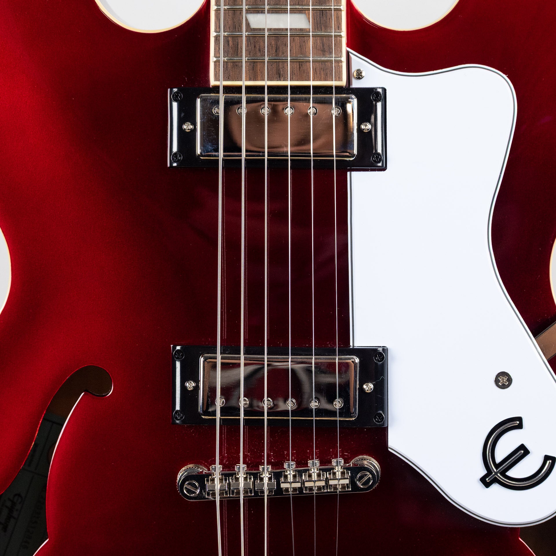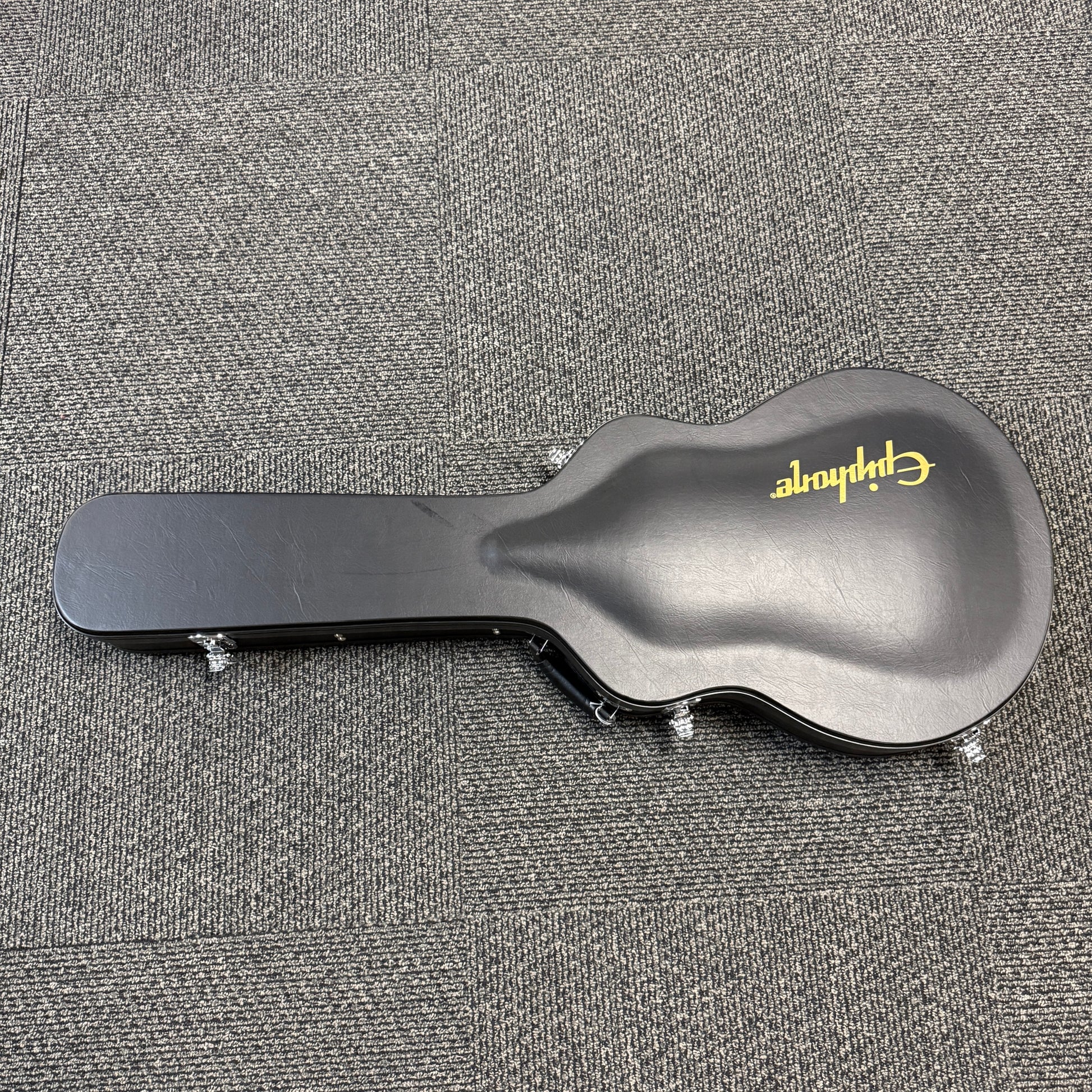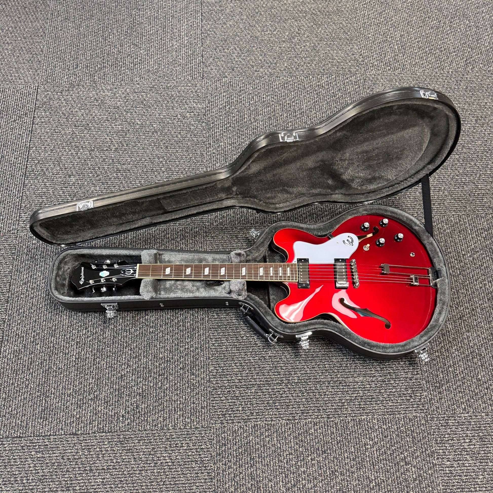 This used Epiphone Riviera is in mint condition with no major dents or dings. There are some light scuffs on the pickup covers. Little to no fret wear. Comes with a hardshell case.