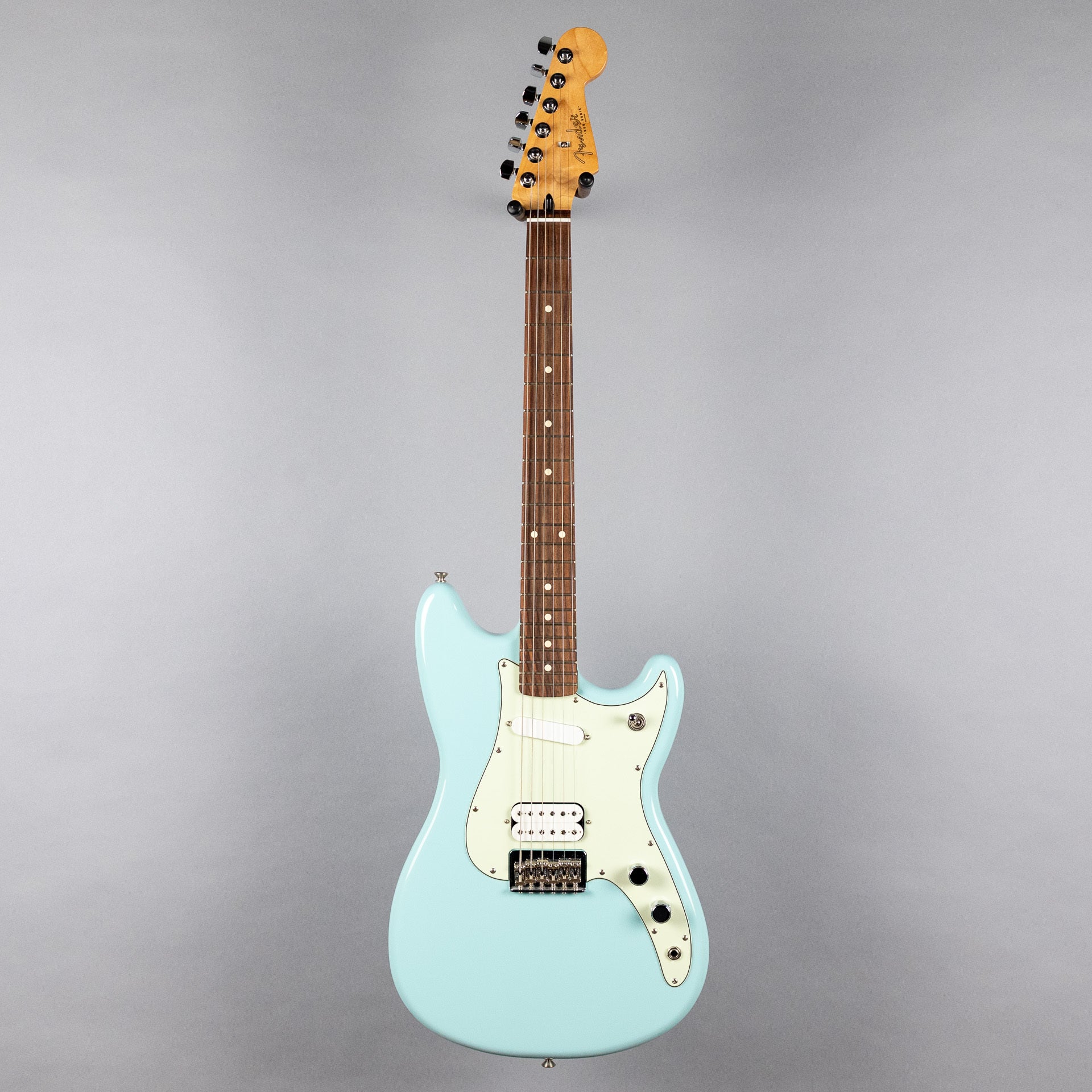 This used Player Duo Sonic HS is in excellent condition with very few scuffs in the pickguard and finish. There is a little pitting in the bridge and tuners. Little to no fret wear. Comes with a Gator brand softshell zipper case.