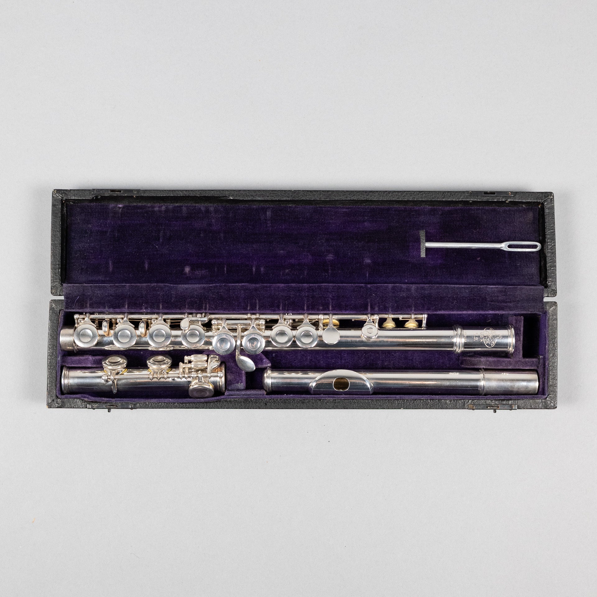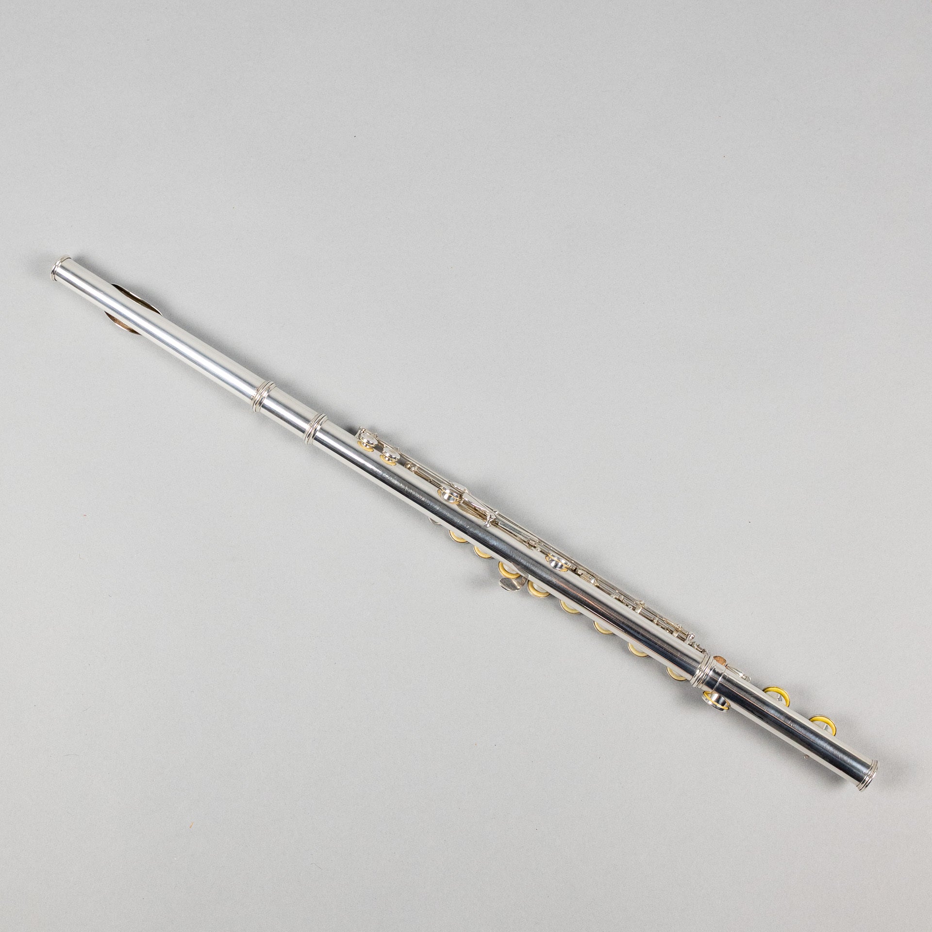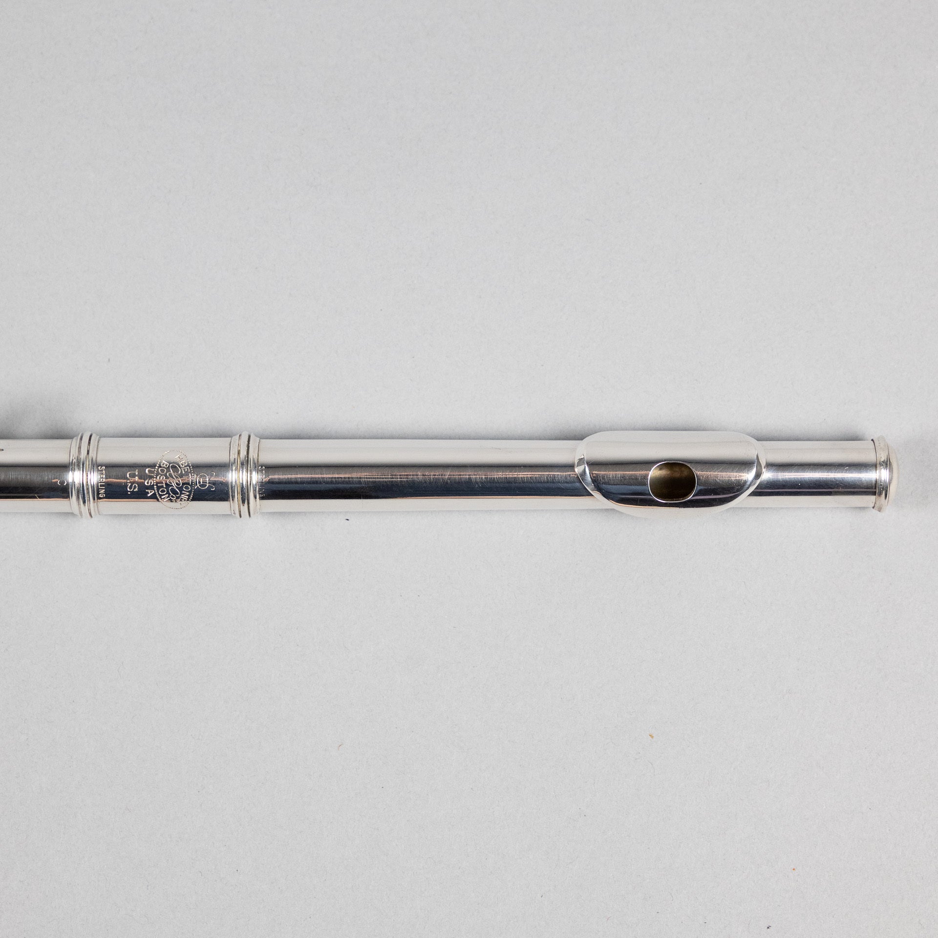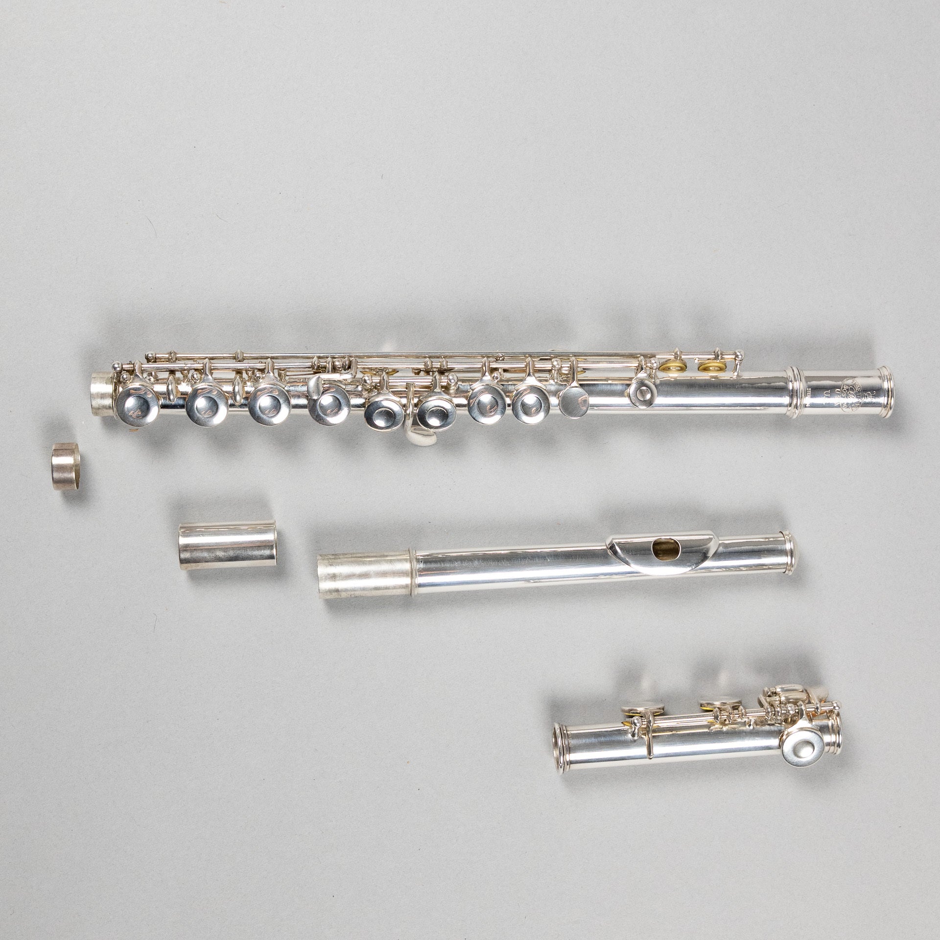 Very good condition with some small scratches and wear in the finish. Sterling silver student flute. Closed hole, C foot. Comes with a case and joint covers.
