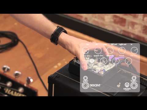 The Descent was designed to create ambient textures of sound, from thick and endless hall reverbs to symphonic shimmers. The Descent is a three mode reverb system; hall, reverse, and shimmer. In each mode, the user has the ability to feed +1 and -1 octaves into the reverberated signal.