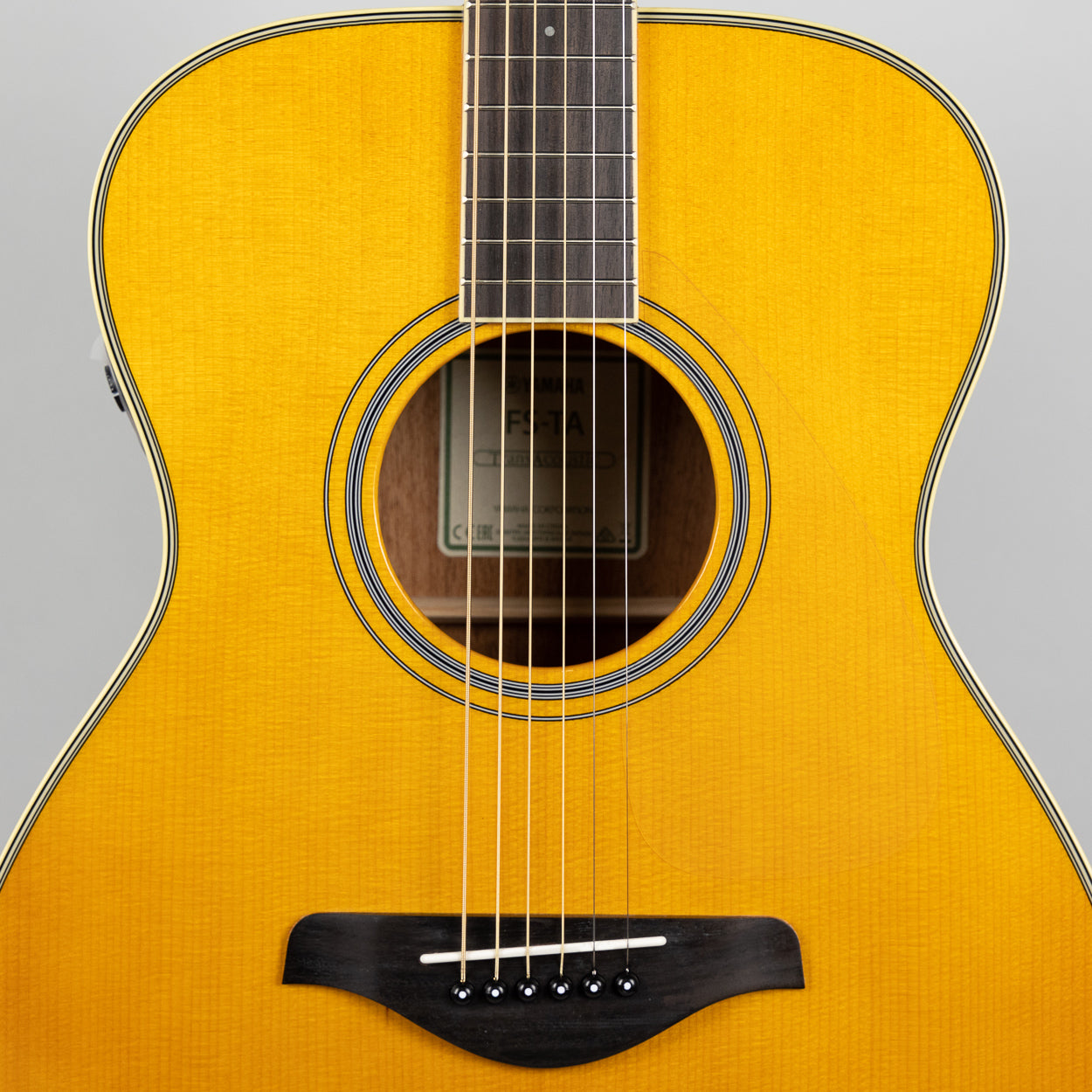 Yamaha FS-TA TransAcoustic guitars transport you to new, creative spaces with immersive reverb and lush chorus effects without needing an amp or other external gear. Great for fingerpicking, the concert body FS-TA features a solid spruce top with mahogany back and sides. It delivers rich warmth and resonance while maintaining excellent tone.