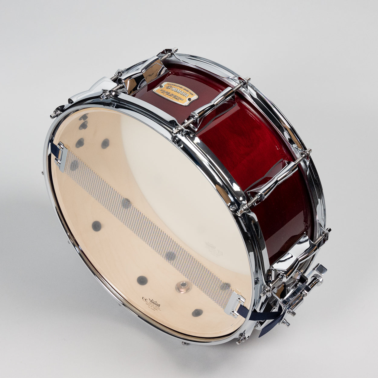 A tribute to Yamaha design technology, the original ball mount and clamp have not changed much over the years. A large, ultra-hard resin ball sits in an attractive chromed housing, held in place with a titanium ergonomic wing bolt. It is the ultimate drummer-friendly mount offering non-slip postioning and tuning of the bottom head by simply rotating the drum.